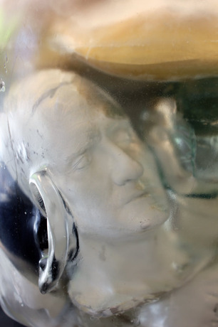 Within the cast head, Dupont included aged epoxy rapid prototypes of himself and his wife as well as two antique glass heads. The work was especially interesting in the context of the show, providing a physical representation of mankind’s organizational system in real space. Dupont’s use of biography and pop culture in the masks created a narrative of memory and storytelling that informed other works within the exhibition.