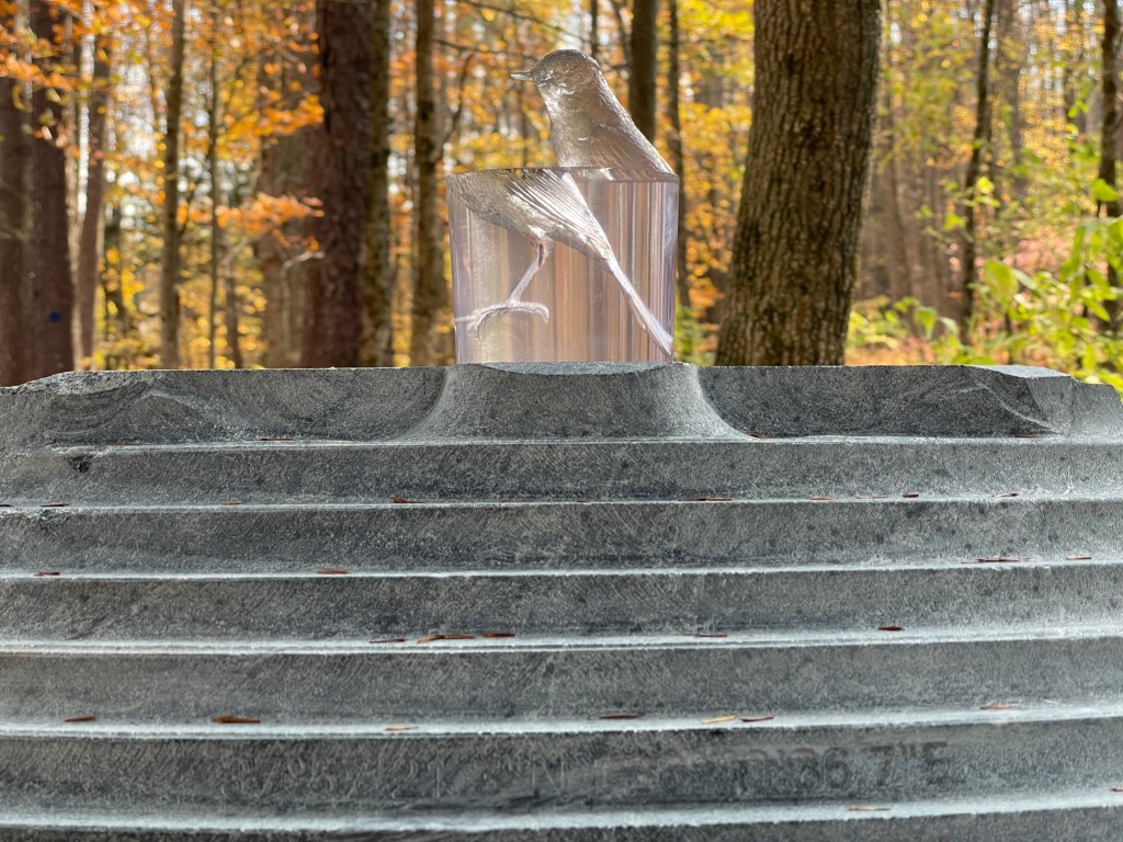 Work from two artists play against a forested backdrop. Beyond the cloistered Hemlock Grove, LA-based Kelly Akashi’s “A Device to See The World Twice” (2020) magnifies the woods from a naturally occurring niche. Depending on one’s position, the central lens of the sculpture may appear to hone in on a toppled ash tree. When Akashi first positioned her sculpture, that tree was vertical. “That incident, that environmental chaos and chance, is what the work is all about,” Epstein says. “It’s meant to train our attention on the present moment while allowing us to realize that everything around us is changing. Nothing is fixed.” Akashi certainly plays with perception—allowing viewers to see the world twice.
