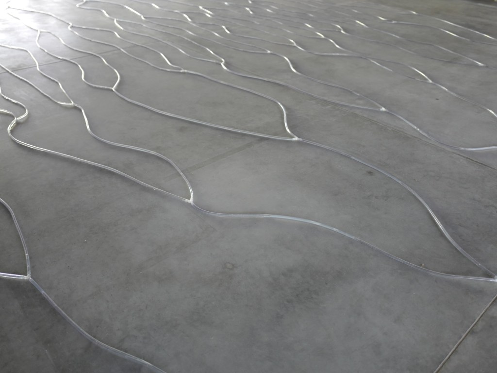 This laundry list of thoughtful benefits runs tangential to the extraordinary art on display. From the museum’s eerie, dangling and oversized cockroach-infested “atrium commission” sculpture by Huang Yong Ping to Doug Aitken‘s “The Garden,” which includes a performance component (wherein a person destroys furniture in an all-white room), powerful pieces rise around every corner. Even those who detest video work will find ample stimulation from John Akomfrah’s six-channel video installation “Purple.” Artist Hayden Fowler, in another live performance, dons a VR headset and locks himself in a cage with a living Siberian wolf (born and raised in captivity); this for sure will be the most controversial of the highlights. And Hans Haacke‘s astounding water and air sculpture, “Circulation” transfixes with its soft, contained movement. To walk through the cosmic architecture, one crosses exemplary works by Tomás Saraceno, Studio Drift and even Maurizio Cattelan.