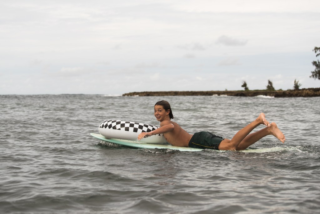 For Tudor, who’s pleasantly interrupted for handshakes and high fives every few sentences, surfing is not a sport, but rather a lifestyle, an ethos he feels strongly about instilling in others. “There’s a million different sports, but none of them are quite like this. There’s something nomadic about having a life that chases the waves and the ocean and the wind. Snow is close to it, right, but snow’s a pretty snooty, rich thing. You gotta have all this shit like lift tickets just to get you up. Surfing you can kinda come from nothing and find your way to it and get your first board at a thrift store and start toward that infectious lifestyle. It’s an attraction beyond athletic.”