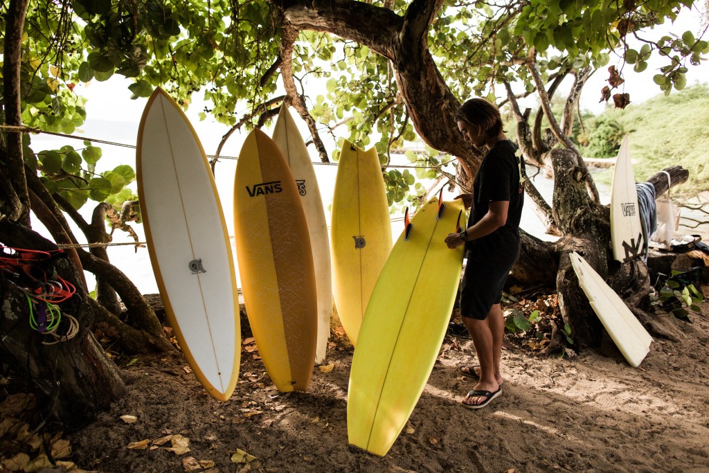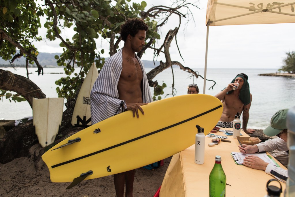 The Festival itself, held in O’ahu’s North Shore on the Pua’ena Point Beach Park, features internationally renowned surfers/shapers like Michael February and Nathan Fletcher who were on site to present their own-hand shaped, custom surfboards that will live on—and be available to rent—at the local surf shop. The event, which is open to the public, invites attendees to take these boards out on the water in an effort to remove the barriers between athlete and spectator. Iterations of the event have sprung up in other nations, including Portugal, France, Japan and more.