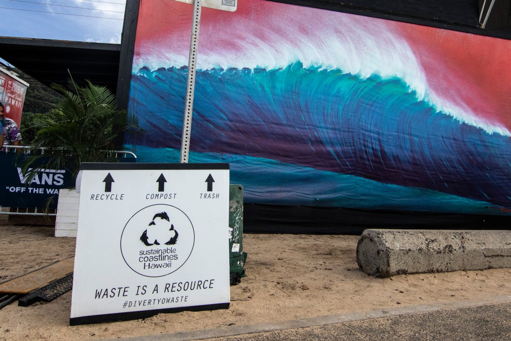For the six years in a row, Vans has partnered with Sustainable Coastlines Hawaii to make sure the brand’s footprint on O’ahu during their annual Vans Triple Crown is not just economically meaningful (the event pumps over $25 million into the local economy, according to the World Surf League), but environmentally solvent. The brand largely known for skateboarding apparel began the partnership with a goal to help in the effort of waste diversion and to bolster the message of inspiring mindfulness with regard to people’s consumption. “Ideally we’d be put out of business because the beaches are clean,” Pacarro half jokes.