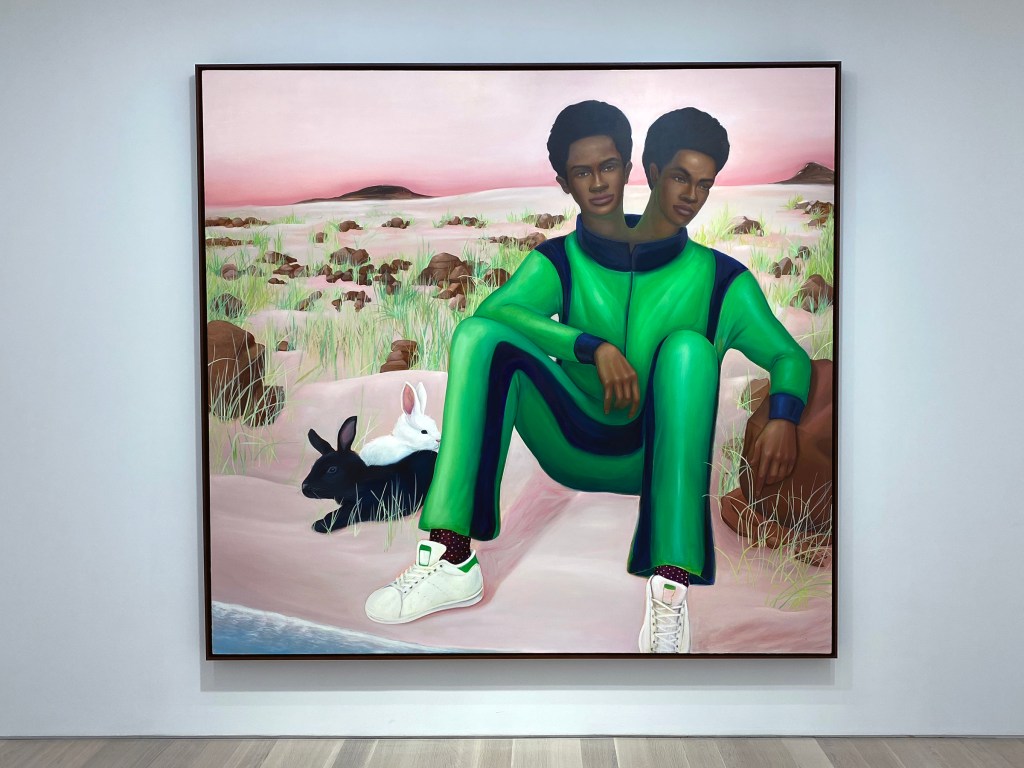 “Ideas for new paintings can come from a plethora of sources,” he continues. “Sometimes I might be referencing a place I’ve traveled, a conversation I’ve had; other times it could be a book that I’m reading or even something I saw someone wearing down the street. I like to keep things open. I’m consistently centering both real and imagined spaces as a way of conjuring poetry and metaphor for these black bodies.” And that’s another through-line of all the pieces: an undeniable poetry.