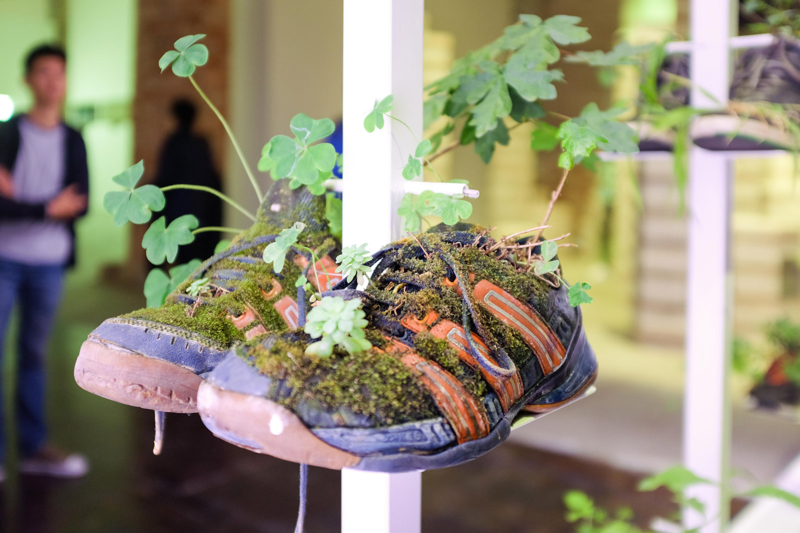 In some installations, the transformation of organic and natural materials is literal. This is the case with the shoes Michel Blazy used as if they were the obvious place to grow plants. Organic materials are also the focal point of what we believe to be the most impressive work of the entire Biennale, Roberto Cuoghi‘s “Imitation of Christ” at Padiglione Italia. A complex creative process has been established in a lab-like environment. It starts with the serial production of several life-size dead Christs made of organic materials. The sculptures are aged in a controlled environment, where the artist cannot foresee the final result. As a final step, Cuoghi mummifies the sculptures, closing a circle of life and death, classic art and biotechnology.