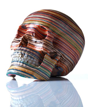 Even semantically, Haroshi sees a connection between human anatomy and the skateboard. “With the skull piece, I created teeth from rubber skateboard wheel,” he says. “I thought of this idea because, as skaters, we use the term ‘wheel bite’ when too much weight or pressure causes the wheel to bump into the deck.”