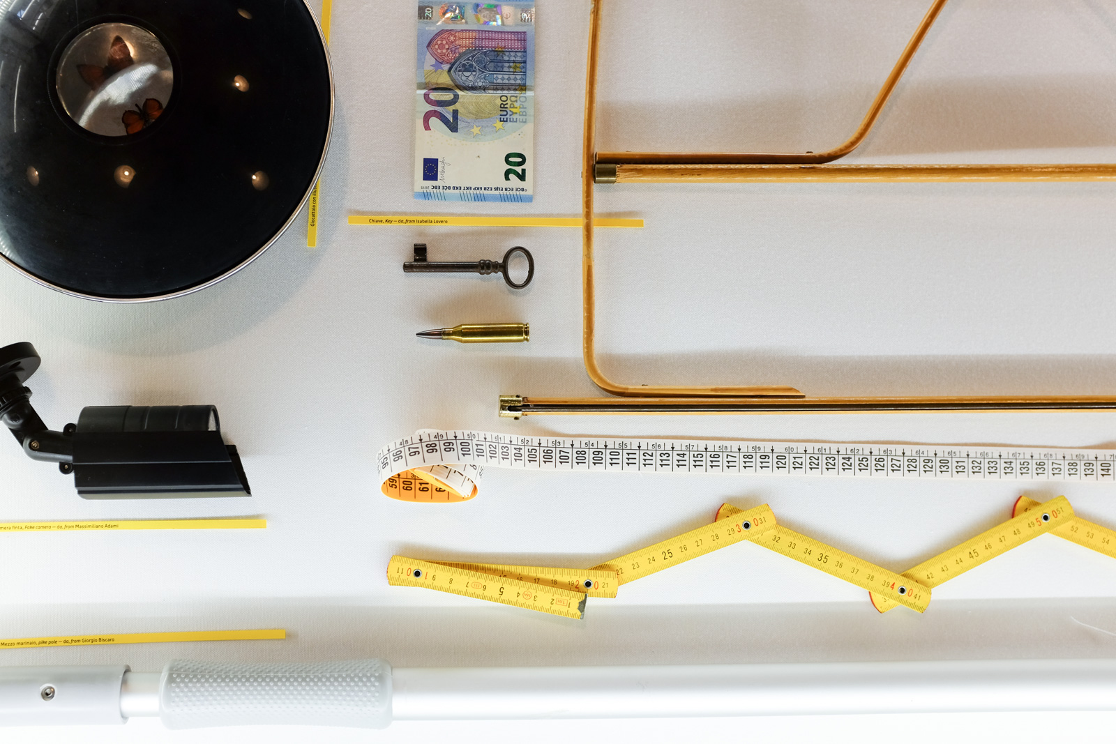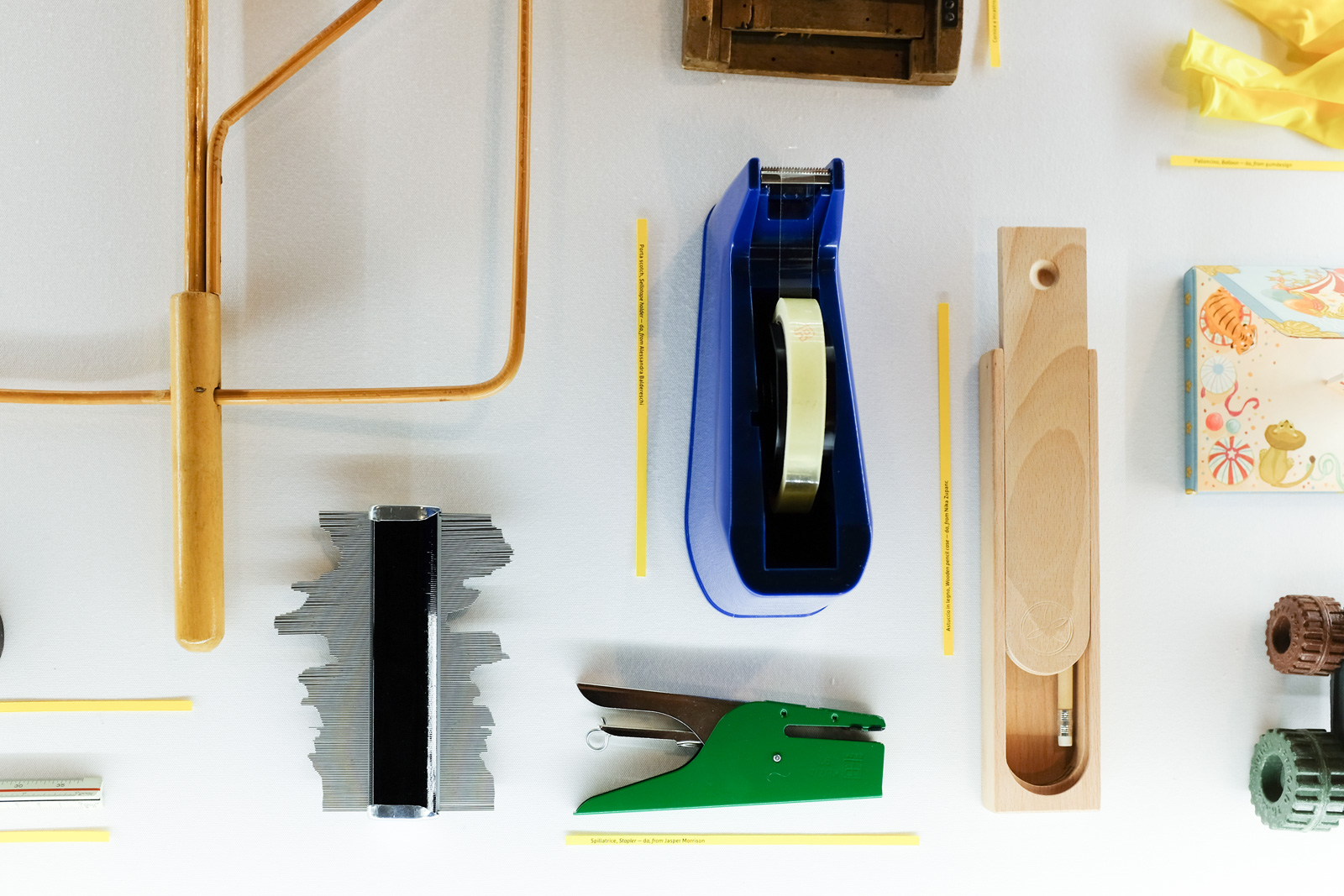 Over the course of several months they received all sorts of gifts. Some of the objects are immediately understandable in their function (like the paperclip sent by Philippe Starck), while others are mysterious and reveal their nature only after being explained (that’s the case of the juicer from Barber & Osgerby). Some are items easy to find at any hardware store (for example, the mousetrap gift from Ingo Maurer) and others are dedicated to very specific professional tasks (like the profilometer from Patricia Urquiola). Some are global icons (Marcel Wanders sent a paper festoon) and some others are typical of specific cultures (the hat of the shepherds of Northern Italy, a gift of Alessandro Mendini).