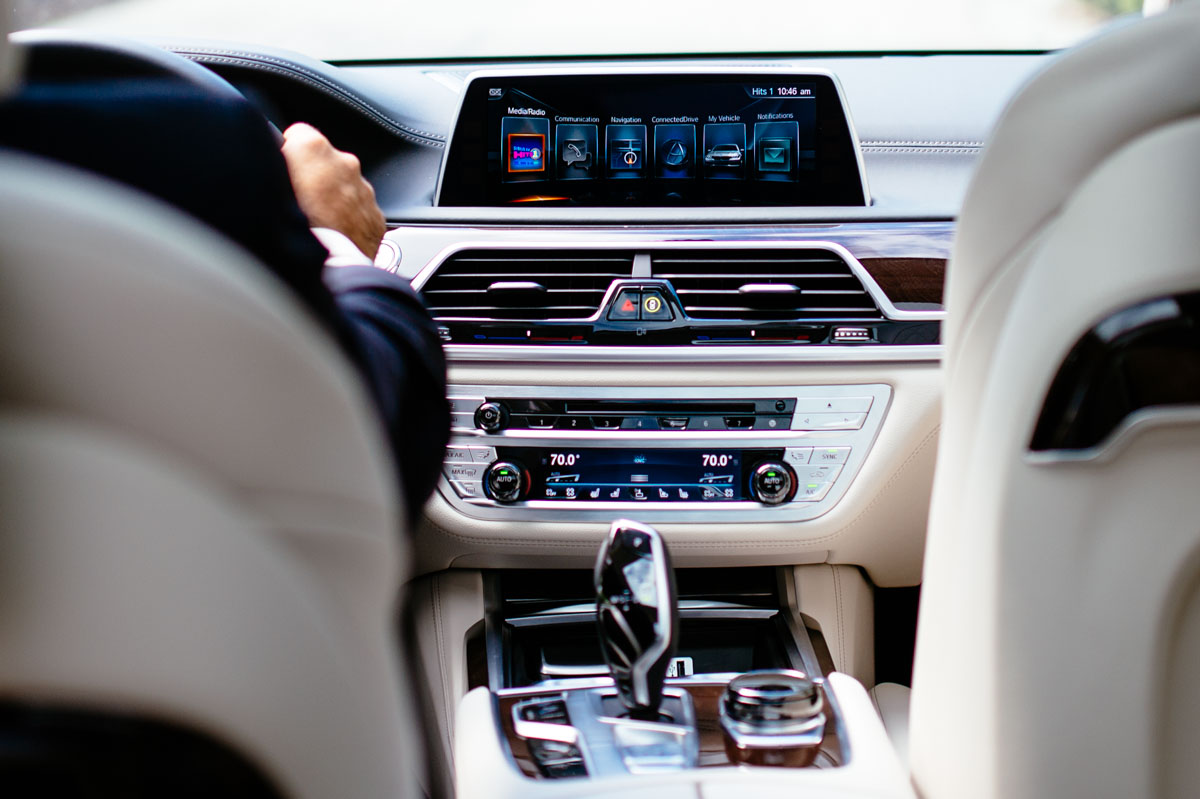 BMW’s technology interface, iDrive, has been upgraded in its fifth generation. The main control knob is now supplemented by a gestural interface and a touch screen. A sensor in the headliner detects hand movements over the shifter allowing the driver or passenger to answer or reject phone calls with a swipe (a la Tinder), spin volume controls or perform favorite functions with a two finger point—we programmed ours to turn on the radio and tune in to NYC’s HOT 97. Adding touch control to the main screen is most handy for manipulating the map’s zooming and scrolling using familiar pinches and swipes.