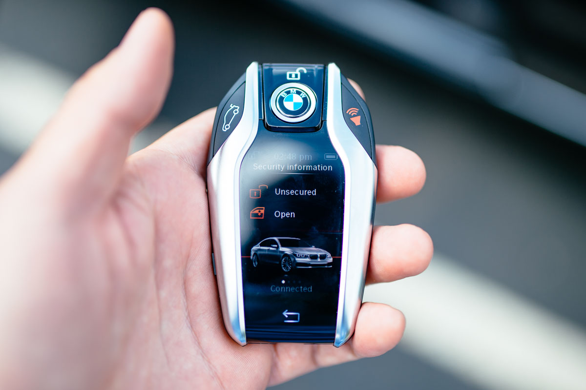 The myriad of innovations within BMW‘s all-new flagship model—the 7-series—is apparent from the moment someone hands you a display key. Yes, display key. The small device features a color touch screen that can be used to answer those ubiquitous nagging questions—how much gas is in the car? Did I lock the doors? Are the lights off? And beyond the simple functionality of controlling locks and starting the car, you can even set a time by which you’d like the interior climate to be comfortable for your return to the vehicle after a hot day out or before a cold morning commute. Not forsaking design for functionality, the display key is ergonomically tuned to feel good in the hand and it’s styled as an extension of the vehicle. Little details executed in big ways set the 750i apart and define the future direction for all BMW products to follow.