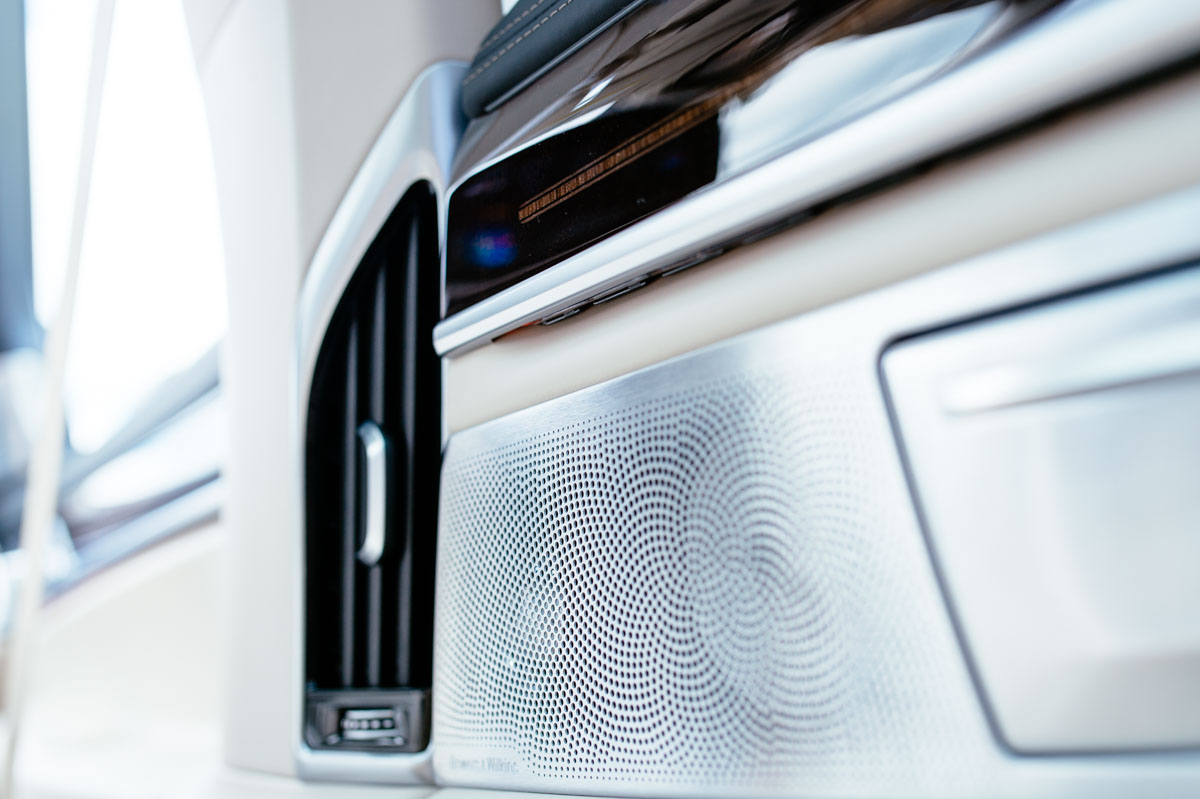 The 16 speaker, 1400 watt sound system from Bowes & Wilkins delivers clear and delightful tunes. The speakers are beautifully integrated within the interior design of the cabin, even playing harmoniously with a/c vents and door pulls. It’s noteworthy that even while cruising at high speeds with the sunroof and windows open the music was barely compromised.