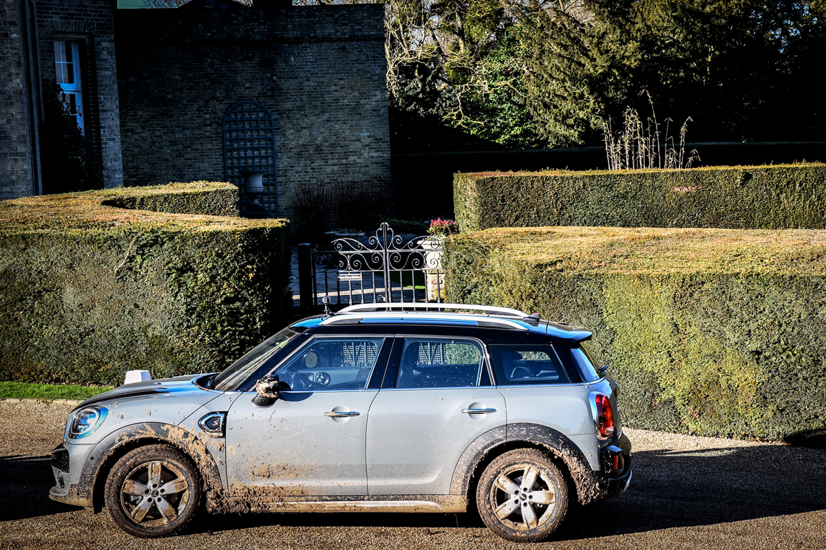 Where the outgoing Countryman could feel punishing on rural alleyways like this, the new car benefits from a wheelbase that’s about three inches longer and just over an inch wider. This chassis is far more comfortable on challenging asphalt and (once we got to the M40 expressway), a lot less boomy over highway expansion joints. It’s an adult-feeling MINI, but it’ll still bomb-around hard when pushed. That’s in part because, thankfully, there’s still sharp feel to the steering, a MINI hallmark, so placing the car precisely between curbing and the onrushing traffic became reasonably rote. It also means mild off-roading is possible (granted we are on a muddy two-track that would’ve been passable on a rear- or front-drive-only car). That does mean getting your Cooper or Cooper S with All4 all-wheel drive (or even a Plug-in hybrid with AWD, coming in June) is about handling snow or gravel roads, not rock-crawling, but even the bulk of Jeep and Range Rover owners don’t take on such rugged terrain regularly.