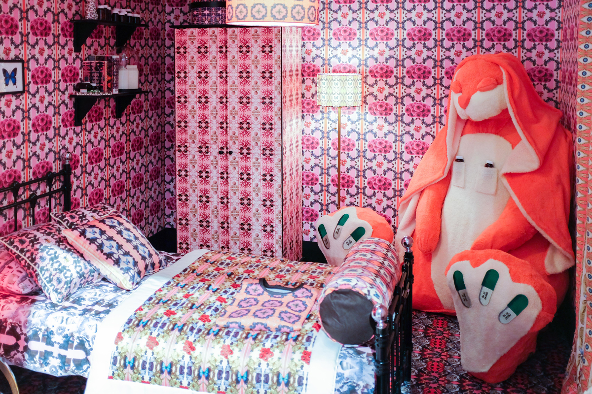 Also tackling the saturation of technology in our lives—both personal and professional—artist Tess Dumon created “Take Shelter.” This piece embodies a tiny room where everything is covered with images found on a phone—in essence, everything consumed via a smartphone each day is now physical. The result is both colorful and scary, invasive yet intriguing, something visitors can’t turn away from—just like our smartphones.