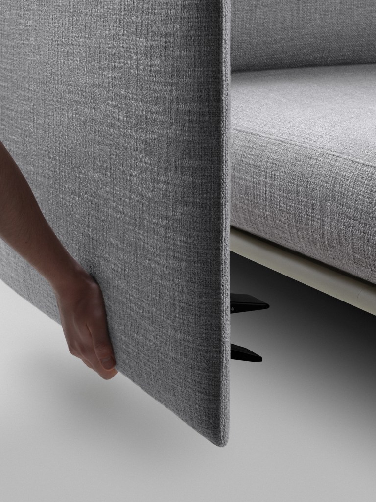 Lausanne, Switzerland-based studio Panter&Tourron might not have the same global brand recognition as historic furniture manufacturer and design leader Vitra, but—as they both made evident during Copenhagen’s 3daysofdesign this week—their partnership on the Anagram Sofa (officially launching this September) demonstrates a powerful, shared orientation toward the future. The Anagram Sofa plays upon the concept of modular furniture but lifts its many restrictions to establish a platform that is reconfigurable as an owner’s needs change. This is achieved through a proprietary rail system that runs along the entire base of the sofa and allows a suite of accessories, including back rests and side panels, to latch on and pop off.