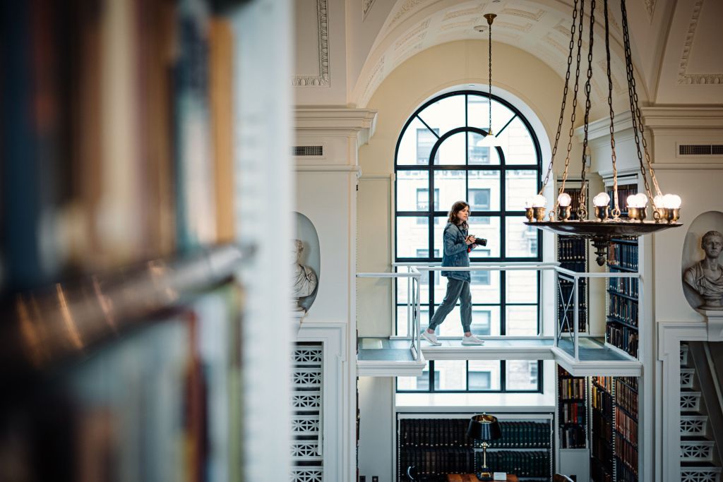 Founded in 1807, the Boston Athenæum is among the oldest independent libraries in the country and continues to inspire “reflection, discourse, creative expression, and joy.” Behind the red leather doors of 10 1/2 Beacon Street are five floors of wonder: rare books, antique photos, marble busts, paintings, and domed ceilings adorned with chandeliers. The basement is home to the Art Department, where shelves are lined with new and old books, periodicals and more. The Reference Department is on the second floor and contains everything from fiction to monthly and quarterly publications. The Athenæum also has several silent reading rooms for those who want to take a seat in one of the green velvet chairs and disappear for a while.