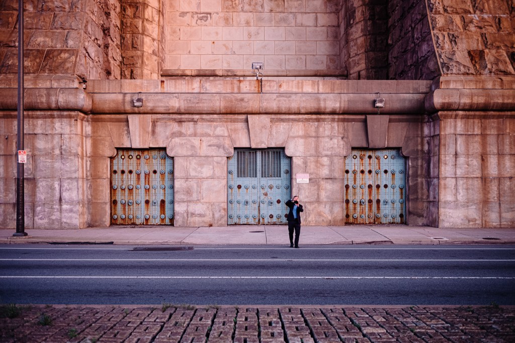 Race Street is a major road that lies between the Delaware and Schuylkill Rivers. From Logan Square to Chinatown, the street eventually becomes the Race Street Pier, which sits parallel to and just below Ben Franklin Bridge. Along the way, there are countless places to visit—from galleries to restaurants—but the base of the bridge itself proves to be a striking backdrop for any portrait.