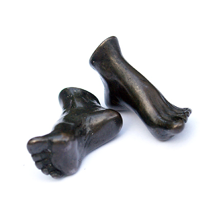 A great deal of Ricketts’ work focuses on hearts, hands and feet, rendered in painstaking detail in sizes as small as one-inch high. The feet are arched or crossed, while the hands are clenched into fists, pointing or simply lying palm up. The impulse to pick up and and examine these minute masterpieces is irresistible, but Ricketts says that she started working in miniature as a cost-effective measure. “Bronze, especially with lost wax casting, is extremely labor-intensive and therefore expensive,” she says. “It was all I could afford to have cast.”