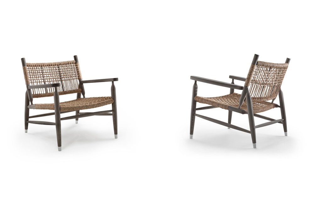 For the isolated Tessa armchair, every element must be handcrafted. A solid ash and turned Canaletto walnut frame spotlights centuries-old Italian art: sturdy, woven paper rush cord in the seat and backrest. “Straw, and wicker chairs, have been part of my memory since childhood,” Citterio says of its inception.