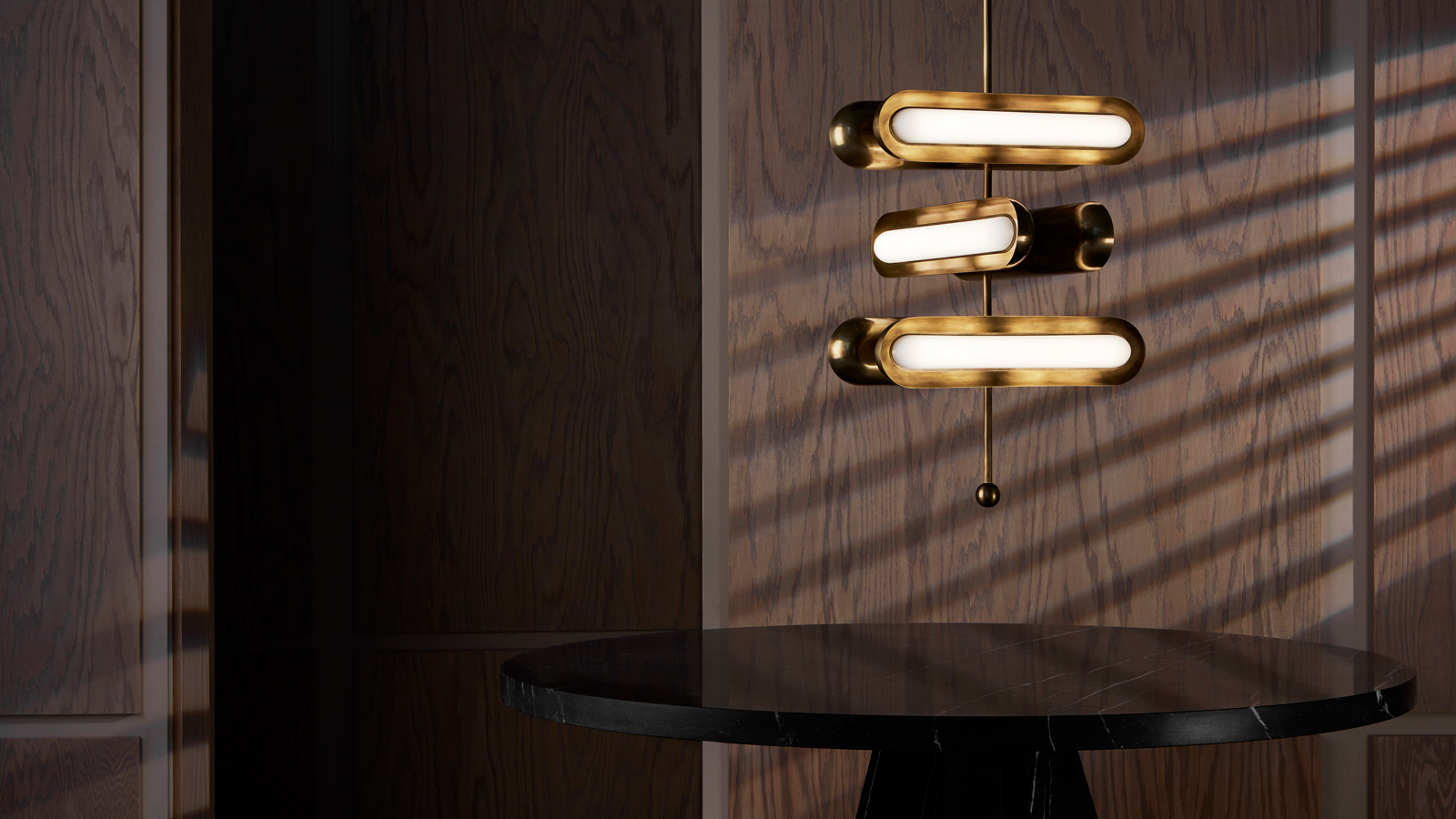 If it was their mesmerizing Cloud lighting collection that put them on the map, then the TASSEL section is what moves their understanding of layering even further forward. All of the fixtures in the TASSEL collection (except for the sconce iteration) feature parallel-placed mold blown cylinders, emanating toward the ground from a central brass basin. The light pours forth with warmth. As for the CIRCUIT series, it’s hard not to make (very positive) associations with the art Dan Flavin. Light is delivered through glowing capsule-like strips, all encircled in brass.