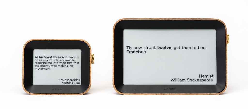 The sustainability efforts around the product are furthered after production. Author Clock works with One Tree Planted to plant a sapling for every clock sold. The clocks themselves come in two varieties: a small, four-inch display ($99) that’s suitable for a desk or bedside table or a larger 7.5-inch display ($199) with a removable base to mount on walls or bookshelves. Both sizes launch today on Kickstarter.