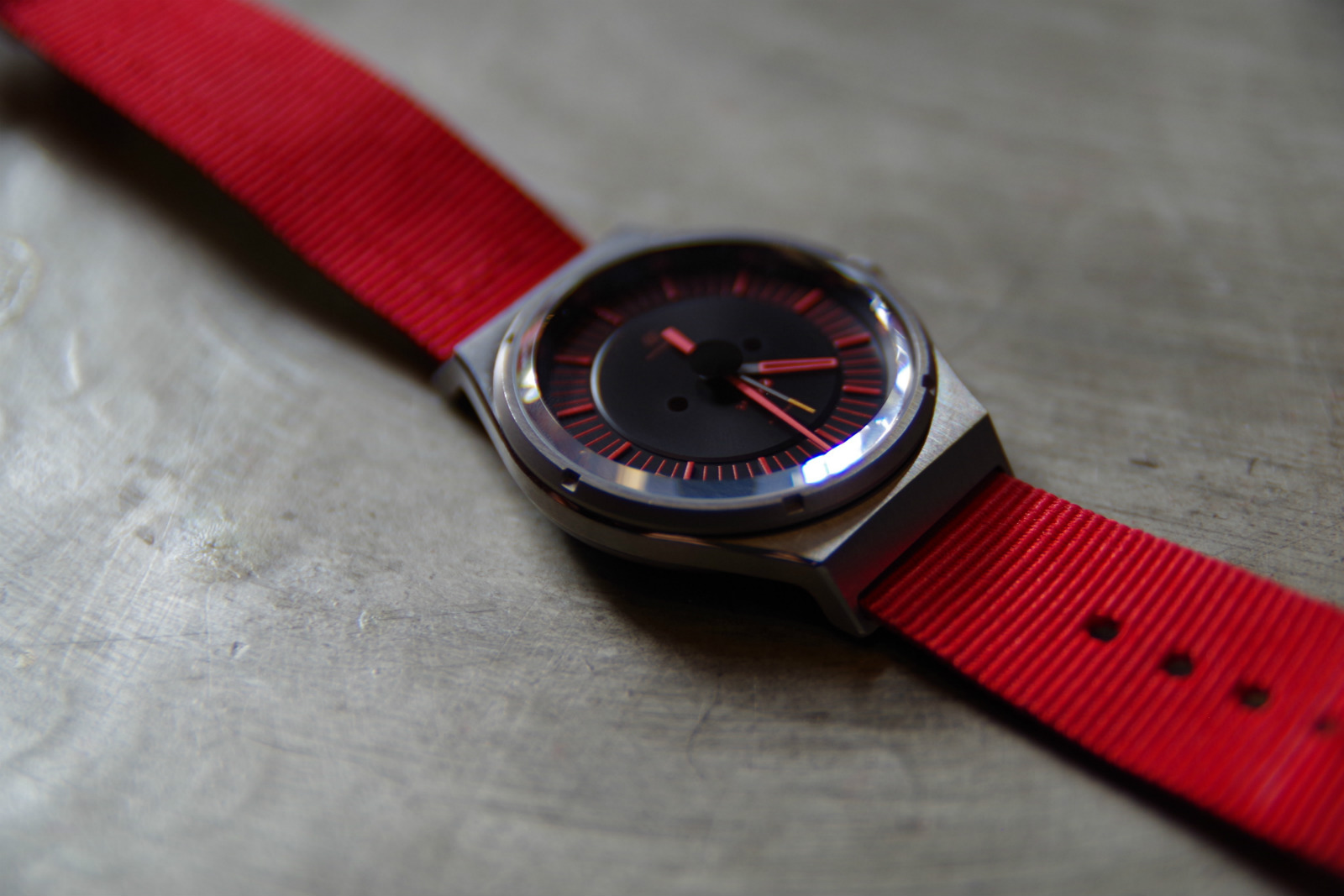 Price chose not to use anti-reflective coating on the sapphire crystal—while this makes the watch harder to photograph, the watch is very readable. His motivation for this steps into a more ephemeral direction. “There are a number of disparate memories or emotional ideas that form the background for something to gel together,” Price explains to CH. “On the one hand, here, you have the ’80s rally inspiration and on the other hand you have the material story, which also ties back to history. From an aesthetic point of view, I was looking at the whole time period that was the early ’80s, when I was a kid, and I remember watching “Back to the Future” when it came out. That scene where you first see the DeLorean come out of the truck and drive across the parking lot, it’s a wet parking lot at night—the way the car shimmers in the dim light is so seductive that I wanted to have the watch speak to that.” Thus, the watch shines brightly in an eye-catching way. Of course, at the core, there’s a highly efficient Japanese Miyota 9015 automatic movement, but the fact that this is a smaller watch with a lot of personality makes these pieces so stellar.