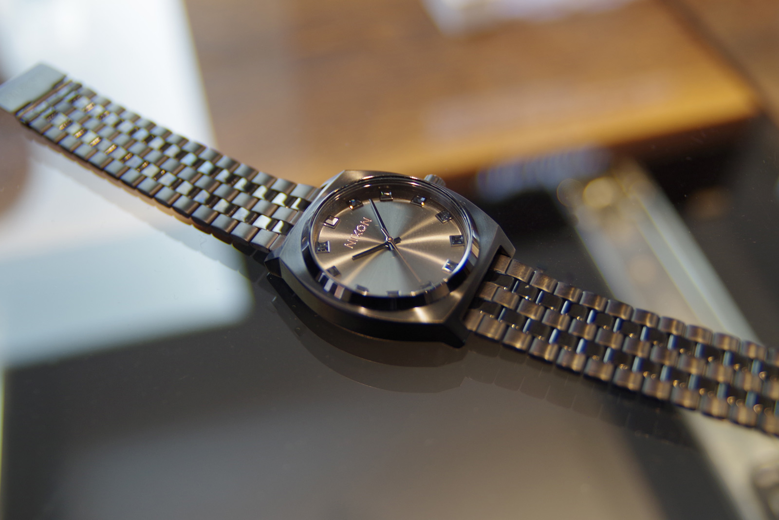 From Nixon‘s forthcoming The Black Rose with Crystals by Swarvoski collection, comes the Time-Teller Crystal. The gunmetal dials feature rose gold and graphite-colored Swarovski crystal accents. On a black stainless steel band, the piece feels uniform and graceful—and while it’s been designed as a piece in the women’s collection, the watch definitely holds its own on the wrist of men. Inside, there’s a three-hand Japanese Miyota movement (highly accurate, but keeping the price down). Altogether, it’s clearly a Nixon piece to pursue.