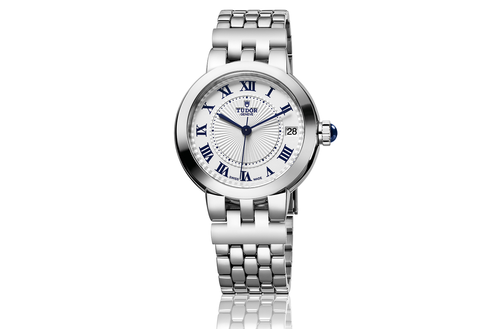 A truly refined stainless steel automatic timepiece, Tudor‘s Clair de Rose is beautiful outside and technologically-advanced within. Featuring a self-winding mechanical calibre 2824 movement, the watch builds a 38 hour power reserve. Flourishes from the blue spinel cabochon to the opaline dial convey importance of detail. The piece is available in 26, 30 and 34mm case sizes and six styles, with prices ranging from $1,900 to $2,300. It will be available in limited quantities this September.