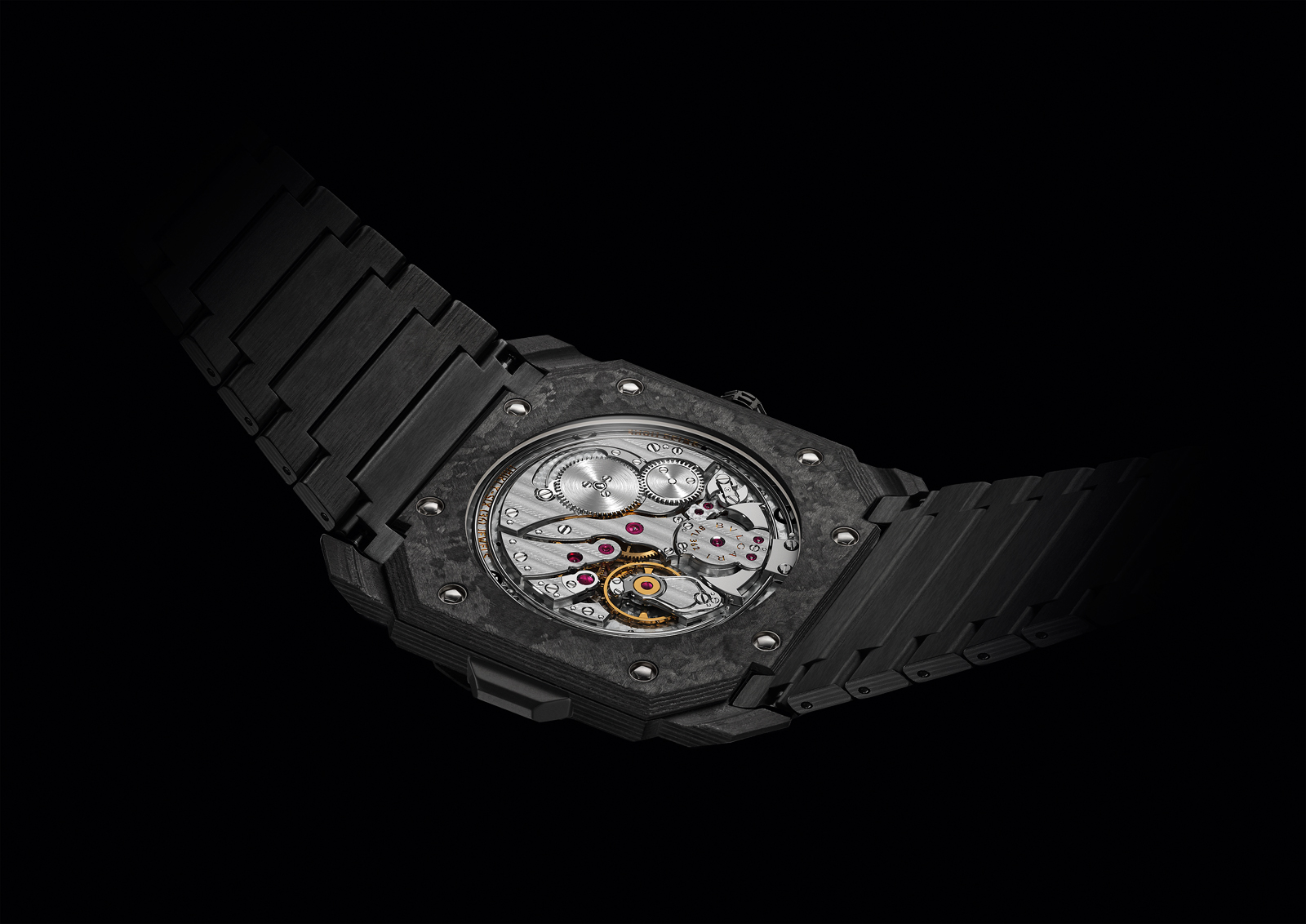 All eyes may be on Bulgari for their groundbreaking Octo Finissimo Tourbillon Automatic—which sets three watchmaking records as the world’s thinnest automatic watch, thinnest automatic tourbillon, and thinnest tourbillon—but at this year’s Baselworld watch and jewelry fair, another model from the Octo series captivated for different technical developments. The Bulgari Octo Finissimo Minute Repeater Carbon also claims a record as the world’s thinnest minute repeater—an astounding feat as minute repeaters often need internal space to produce sound. It’s worth mentioning that Bulgari’s ambition in the record-claiming sector of haute horlogerie isn’t a direction driven by vanity, rather it’s an impassioned brand tentpole that’s pushing all of watchmaking forward. And with that, the Octo Finissimo Minute Repeater Carbon is more than a pretty, all-black entry into their Octo Finissimo series.