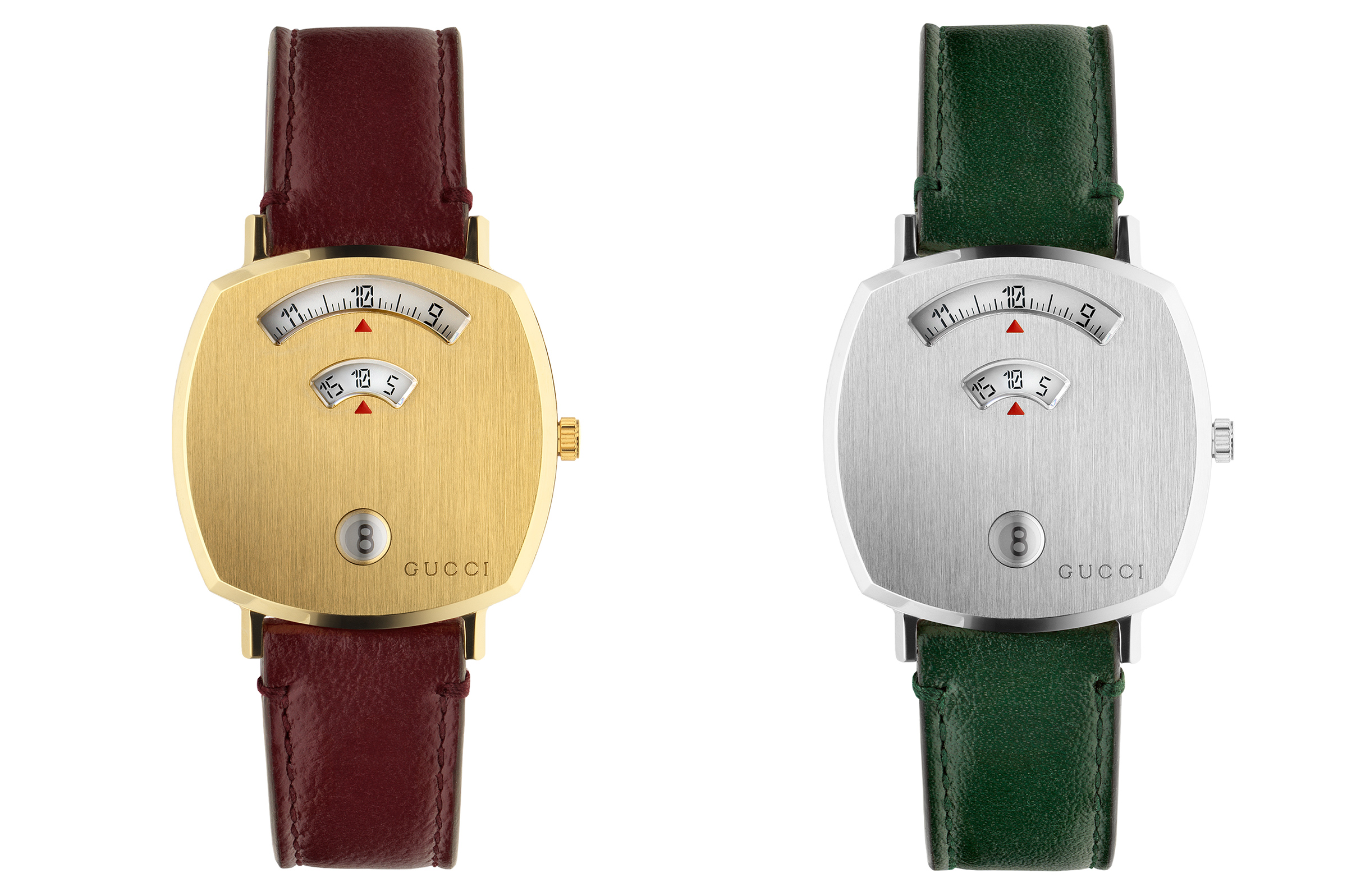 For their latest release, the Grip, Gucci devised several iterations of a watch with a rounded-square case with three windows. These unisex Quartz timepiece balance vintage sophistication with future-forward time-telling. The cases have been crafted in steel and yellow gold PVD—and come with either leather straps or bracelets. There’s also easy legibility here—with one window dedicated to hour, another to minutes and the last to the date.