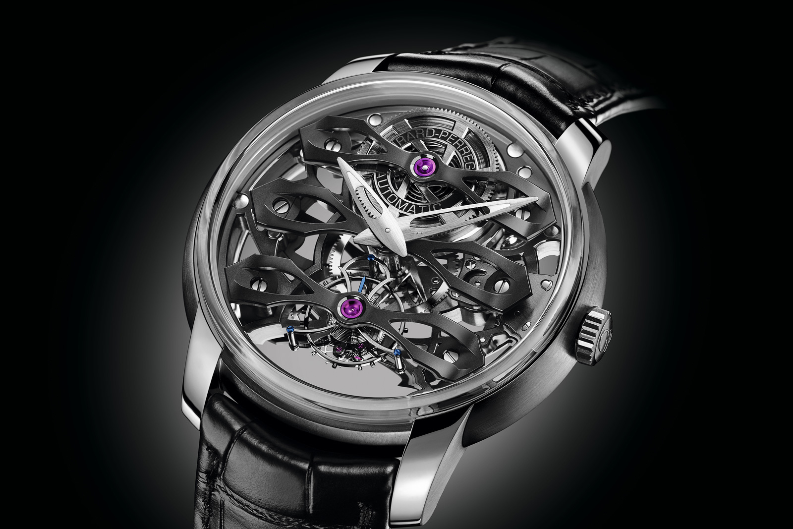 Holding the record for the thinnest mechanical watch in the world, Piaget’s Altiplano Ultimate Concept Watch measures a striking 2mm thick—overall. It is so thin the brand needed to make a thinner strap to accompany it. Unfortunately it’s a concept only, albeit a working one. Four years of research and development went into this, and a new high-tech cobalt-based alloy and precise use of the glass make it a possibility—not to mention the proprietary movement conceived at their La Côte-aux-Fées manufacture.