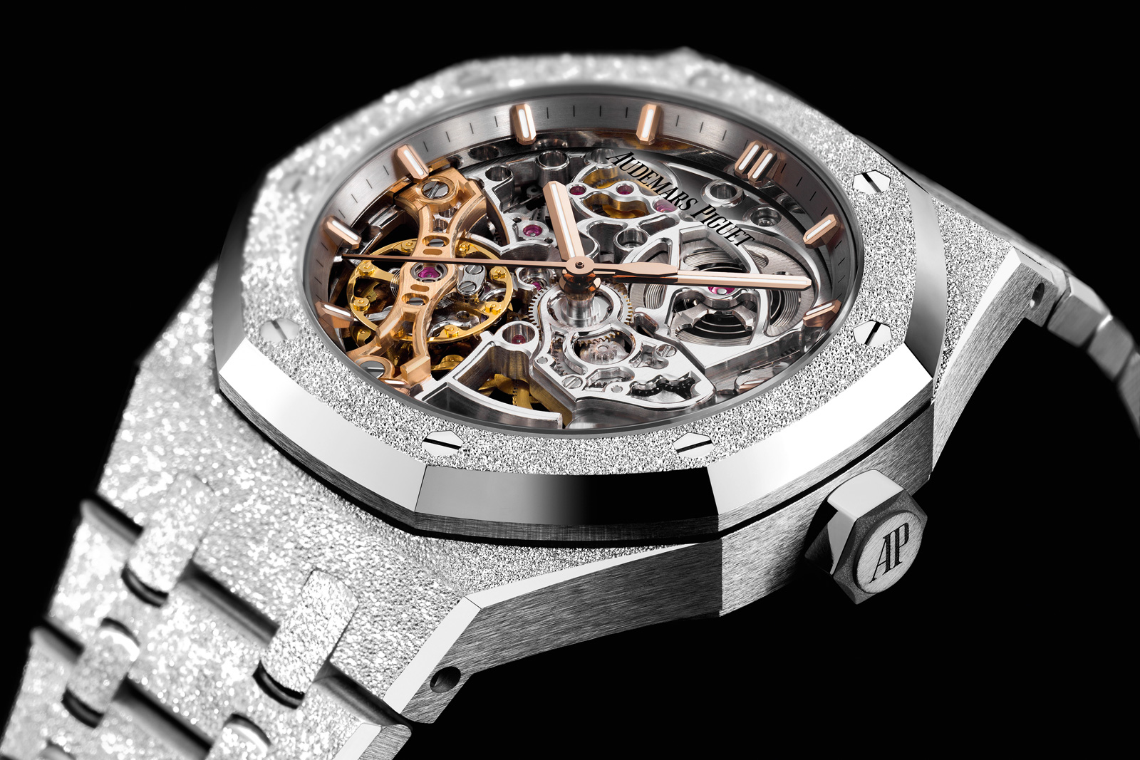 Regardless of how the word “frosted” makes you feel when it’s about gold, the process behind this precious metal embellishment is a challenge and the results are arguably exquisite. Frosting included, Audemars Piguet has unveiled a truly delectable piece with the Royal Oak Double Balance Wheel Openworked—pictured here in white gold. Beyond looks, it’s all in the facts: 37mm, calibre 3132, hand-finished detailing. The exemplary mechanical innards are visible from both front and back, thankfully.