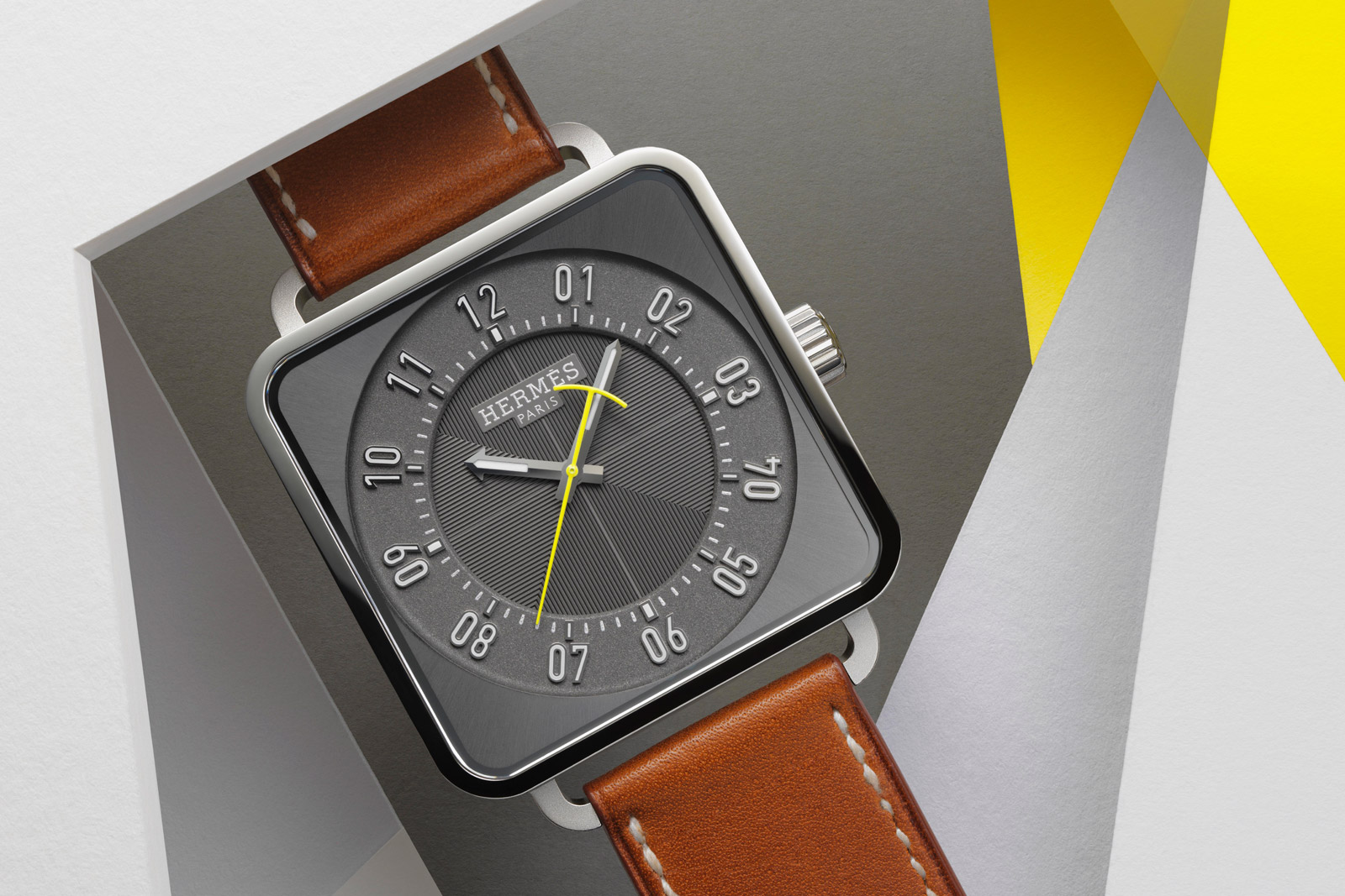 No one strikes elegant playfulness quite like Hermès and the latest Carré H reinforces this statement. The piece was actually designed and released in 2010 by Marc Berthier but this latest version ditches titanium for steel—there’s also an Hermès caliber H1912 automatic movement inside for the first time. This 38mm wide square watch and attributes like a yellow-colored seconds hand combine to make something distinct, and fashion-forward.