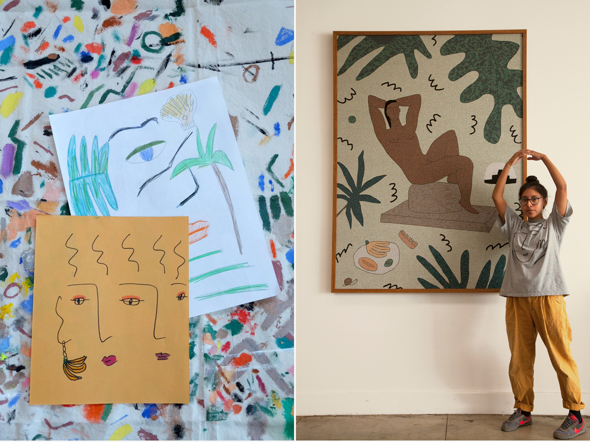 Of her creative process, Martinez tells us, “I like to explore a lot of the same color palettes and themes within my work. Conceptualizing and designing a piece happens fairly organically. I like making lists and sketching. It’s a really fun way to organize thoughts and ideas.” Production, on the other hand, requires a lot more research and planning, “The internet really informs that process—it makes things very accessible,” she says.