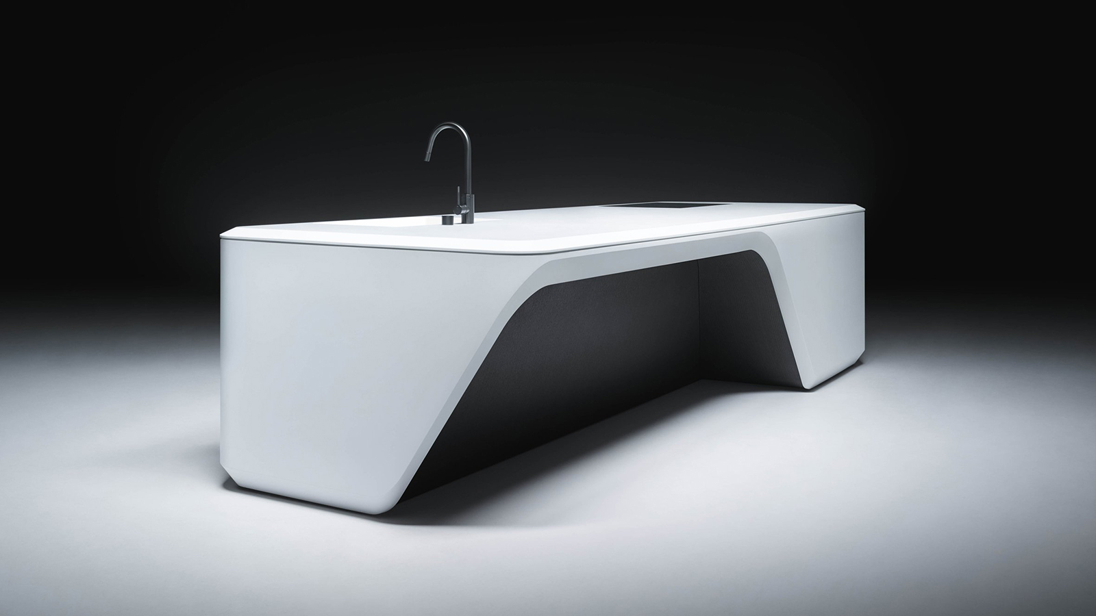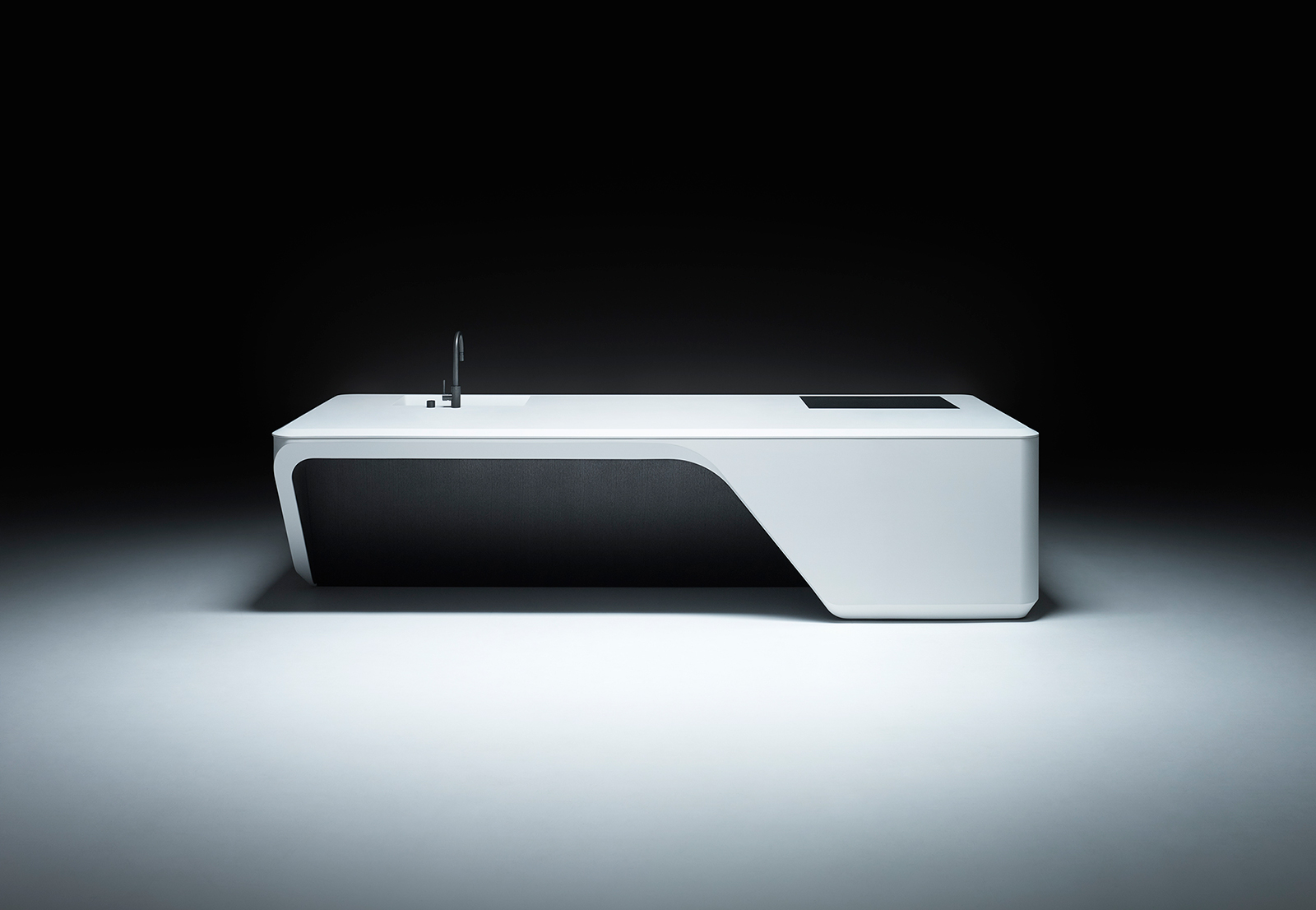 Even a quick glimpse at the late Dame Zaha Hadid‘s COVE kitchen for Boffi reveals the signature stylings of the acclaimed architect. The freestanding unit’s smooth geometry makes reference to the curvilinear design of the MAXXI Museum of Art in Rome and even the curves of the cultural center of Baku. As for materials, they’ve been kept to hand-finished natural stone, a select wood veneer and high-performance Corian. Entirely customizable and available in two sizes, COVE incorporates a stovetop and sink into the sleek surface, while drawers are inset on one side and a nook for stools on the other.