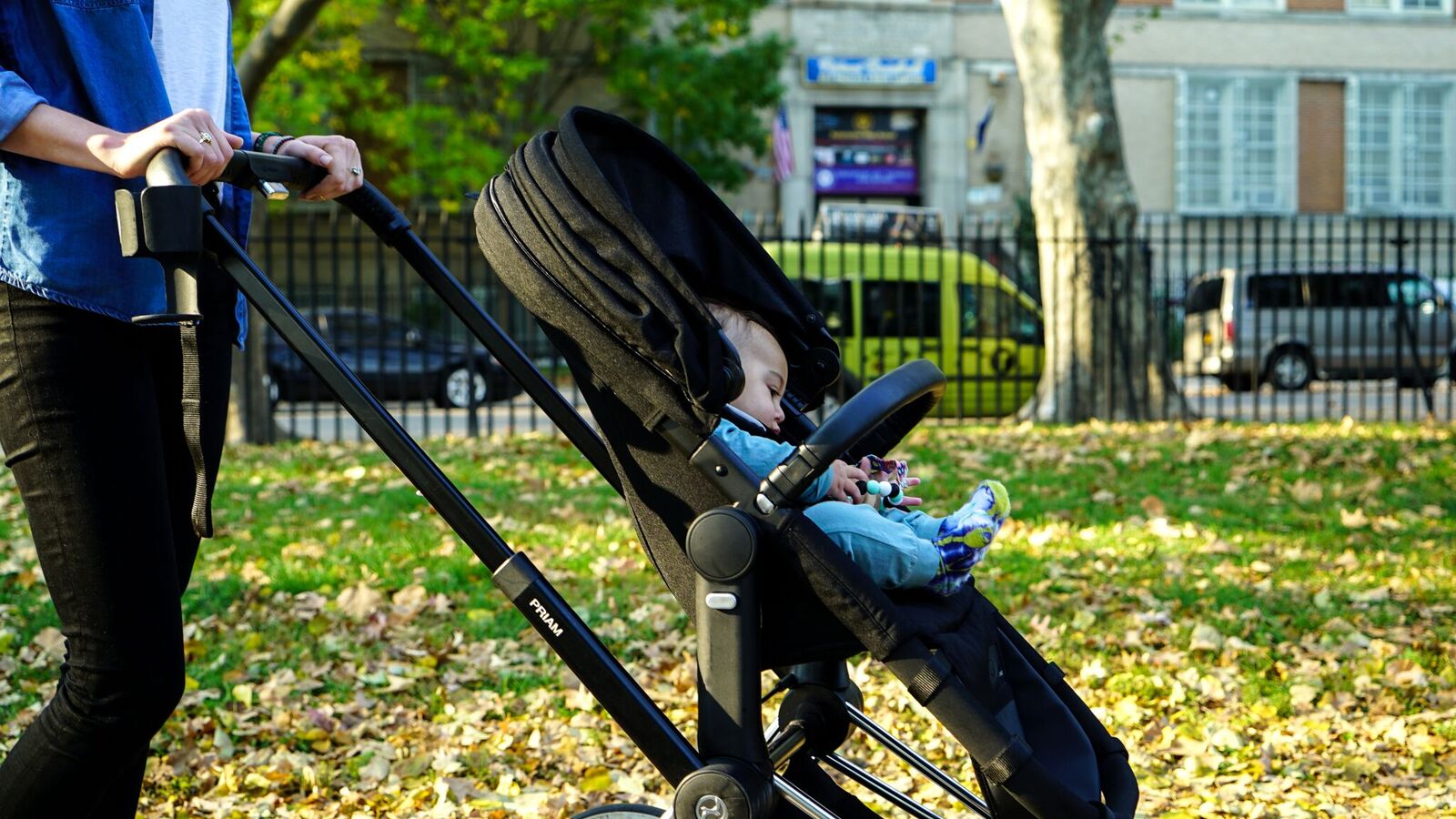 Beyond its one-handed ingenuity, using the system is generally easy once you learn the basic functions. The design really shines when put to the test in a variety of situations. Need to pack it into a convertible’s tiny trunk? Wheels come off with the push of a button, clicking back into place once you’ve arrived at your destination. Want to get the handle out of the way when dining at a cramped NYC restaurant? Pushing a button slides it into one of three positions (though we wish there was a low option that didn’t hit the baby’s feet).