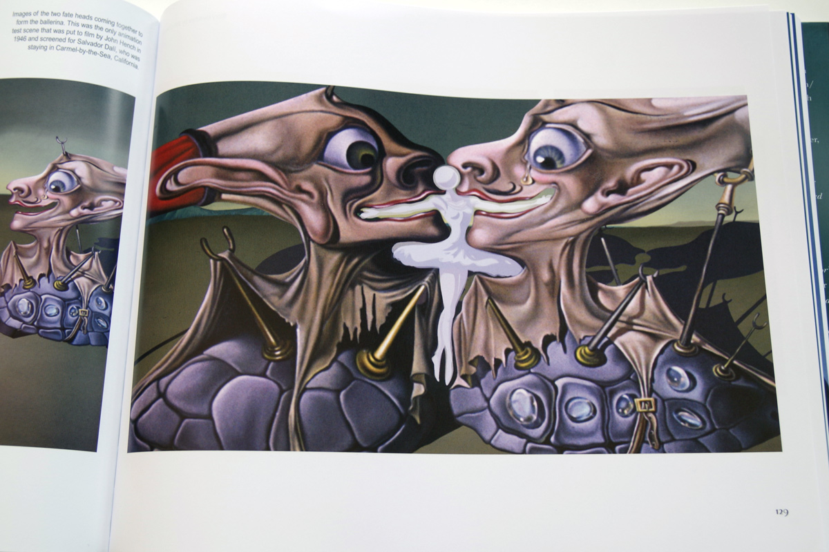 Bossert’s tribute features all 150 pieces of original artwork. There are story sketches and developmental art pieces, but further, there are photographs of correspondence during the project’s advancement. This alone offers an insider perspective into the two collaborators and their burgeoning relationship. Finally, Bossert explains how the original seconds-long piece of animation from 1946 was dissected, restored and reassembled to create the final film—in conjunction with references from Dali’s original notebooks and the work of animators from Disney Studios France and Destino‘s director Dominique Monféry. Altogether, it’s a valuable, well-researched and aesthetically pleasing book on one of the most fascinating film collaborations in history—with insight enough to appease lovers of both artists’ work.