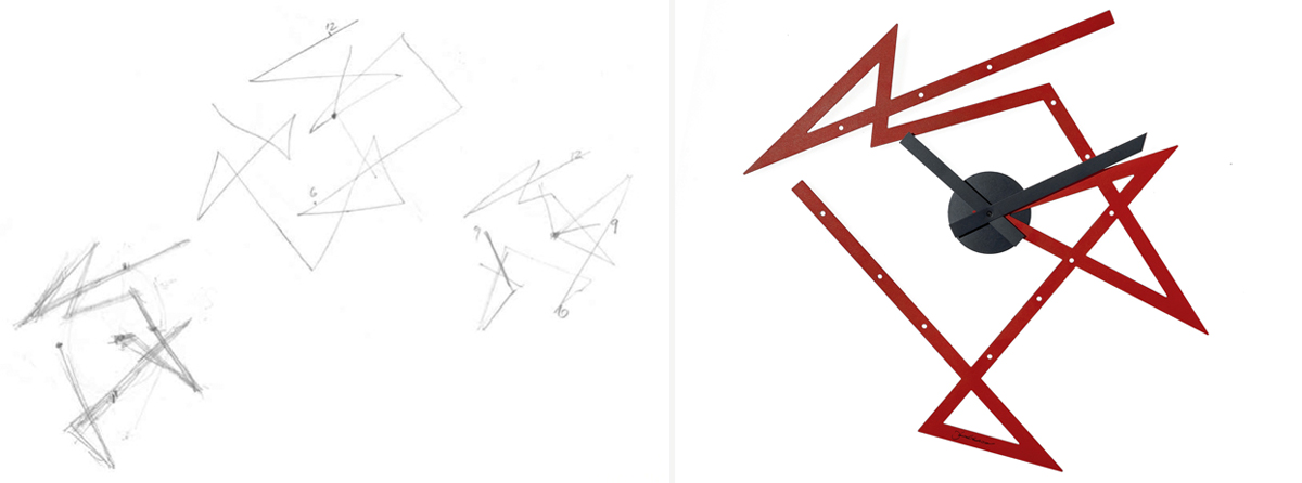 On the production of the clock, Libeskind tells us he worked closely with Alessi—Alberto Alessi in particular—and was wholly satisfied with the outcome, despite it being a difficult design to bring to life. “This is metal, it’s metallic, and it’s not easy to produce such a perfect line that seems to intersect but is completely perfect in its angles, in its geometries, and I think it’s very beautifully made in terms of its thickness, elegance. It’s a very elegant thing. It’s very puristic in the way the line works, as a line should work. And of course, Alessi is a great company with details, the details of small objects. It’s one thing to have an idea of the clock; another is to produce one that really works, that’s got to be beautiful.” As for collaborating, he says, “I think it’s important to say that Alberto is a very special person. He’s not one of those people that just produces things to make quick money. Of course, profit is important, but it’s the idea of design that is part of the incredible company which everybody loves. Anywhere in the world, Alessi is the gold standard. It’s incredible, it’s an encyclopedia of design.”