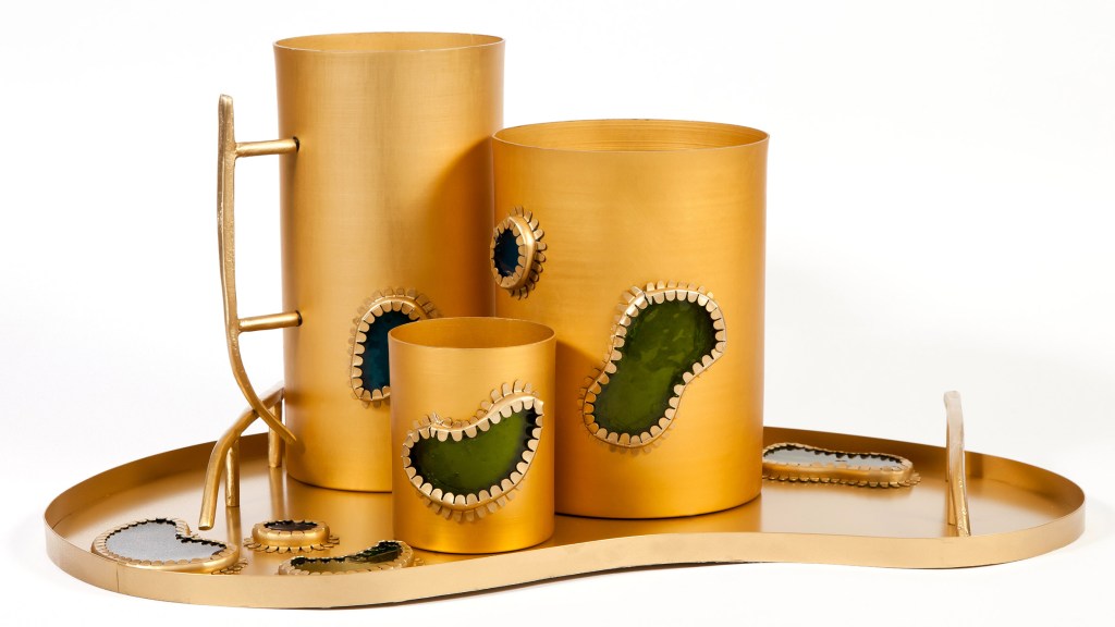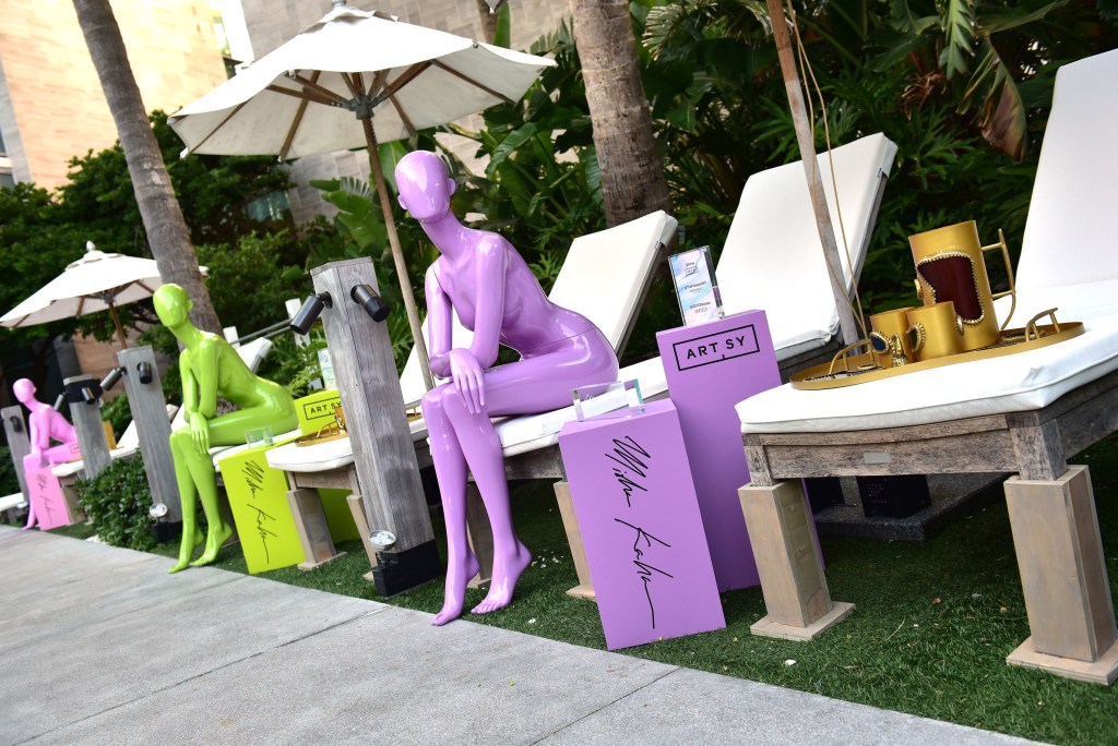 Made by hand in Turkey, the golden aluminum and glass collection includes pitchers, cups, straws and a carrying tray. Prospect NY and Artsy collaborated on their development and release. At their debut, Kahn also revealed tie-dye inflatable sculptures that doubled as cushions and pool floats. It was one of many events hosted at the Miami Beach EDITION this year, including others for the Haas Brothers, Daniel Arsham, Paddle8, as well as Sarah Bahbah‘s immersive work “We’re Not Really Strangers.”