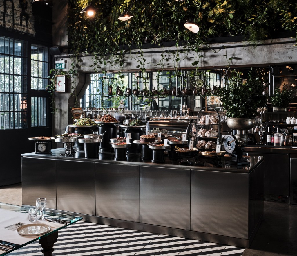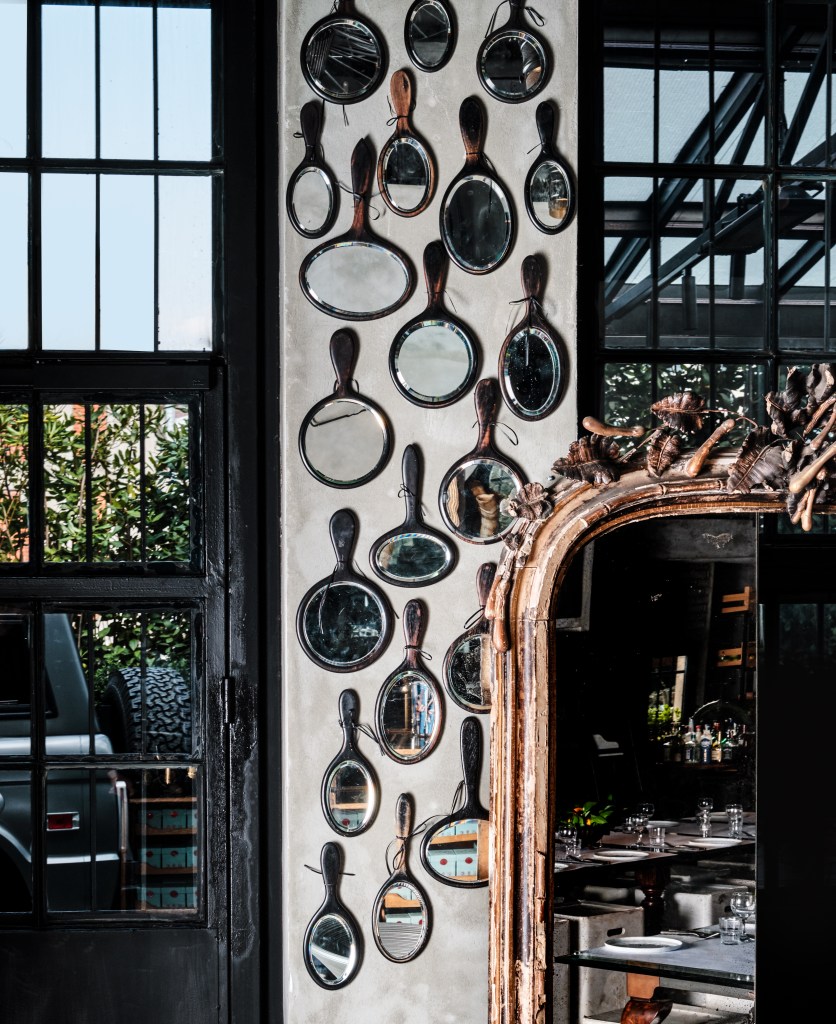 Enis succeeds in providing the unexpected. “People come here, and they just think it’s a restaurant,” he says. “They get in, and they’re in shock. I like that moment when the wow factor is kicking in. I really enjoy creating contrast. Here, there’s an industrial and luxury zone; there’s black and white, antiques and new things. That contrast creates design.”