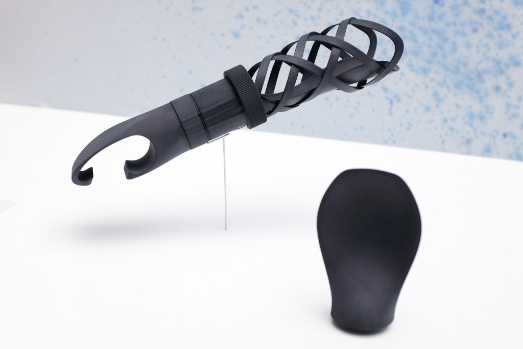 For kids and teenagers (who are still growing) Weave is a prosthetic hand—in fact, various hands, each designed for specific activities. Created by Laurin Schaffner (who graduated from Zurich University of the Arts) in collaboration with SwissProsthetics, the prosthetic on view in Dubai was made for bike-riding, but there are many more with various uses.