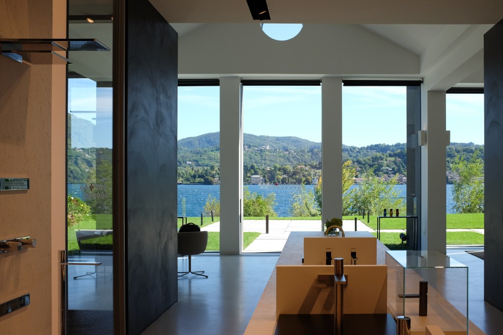 The latest lake-oriented project has been the redesign of the lakefront factory and headquarters. Based on the restoration and integration of old buildings, the renovation was led by Lissoni Associati Milano. The result is stunning and incredibly harmonious, inside and outside. From the offices and showroom, the views on the lake and the San Giulio Island are marvelous. Thanks to the clever use of color and integration with vegetation, the buildings have become virtually invisible from the opposite shore and from the island. This Fantini’s gift to the lake: maintaining its spirit and its unique natural landscape.