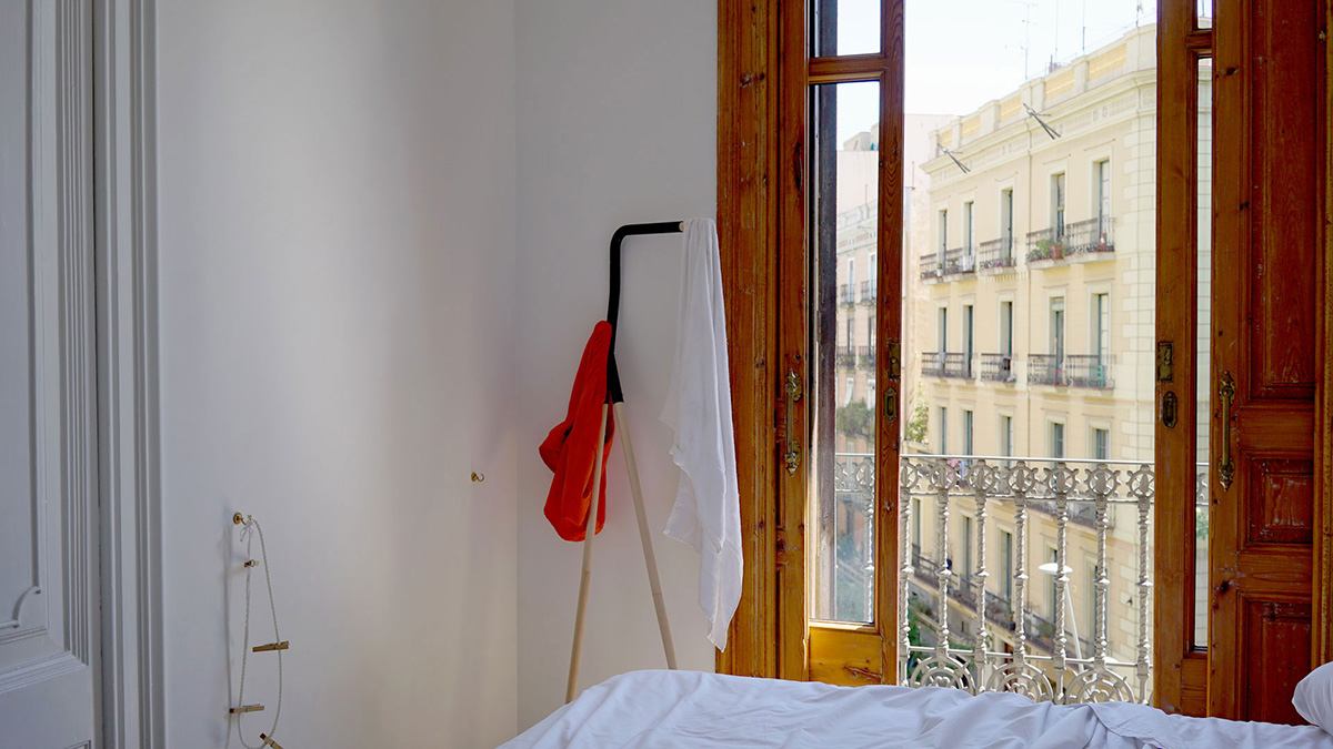The table leg makers launch of collection of portable pieces like a leaning coat rack and bench set