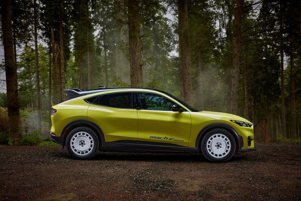 You could say that for Ford’s Mach-E Rally too—minus the sharp turn. If you’re a cynic, the slightly lifted, significantly clad WRX-wannabee electric doesn’t go far enough, and Ford would likely state that they didn’t they want it to.