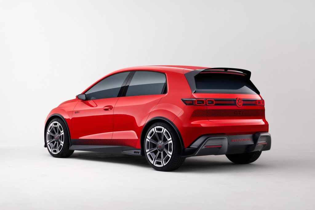 Interior renders are a little show-car fanciful, but not extremely so, and we could well see some of this tech when the car goes on sale in 2026. For instance, designers say you could call up the analogue instrumentation of a Mk2 GTI when activating “vintage mode,” which works in conjunction with the drivetrain to simulate steering feel, engine sound and shift points in the style of prior gas-powered GTI models. Since this will be a front-wheel-drive electric car, at least some of that simulation seems theoretically feasible. Volkswagen says that the car will sport plaid seats—a GTI tradition—and with a wink the fabric is called Jack-e (E, as in “electric”) as opposed to the name first used for this pattern on the Mk6, which was called Jacky.