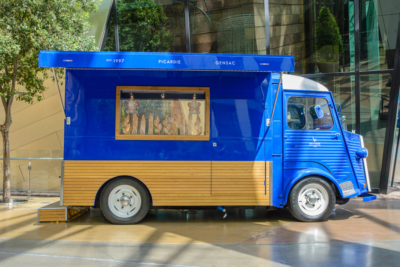 This past week we took time to learn about the three martini lunch in the world’s smallest martini bar. In fact, it’s a former French bread delivery van that features two small stools and a functional bar tucked into the back. Owned by Grey Goose, this camionnette alludes to the Picardie, France wheat used in the making of the vodka. But inside the van, guests get a sense of their specific, desired martini taste profile.