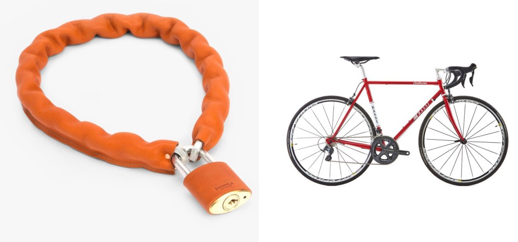 Measuring just under three meters long, Map of Days and Shinola’s leather-wrapped chain bike lock ($285) is stylish and protective. The Horween Essex leather shields the heavy-duty chain within, and protects a bike’s paint job in the process. Further, the hefty, almost industrial-sized padlock is an upgrade for both safety and aesthetic purposes.