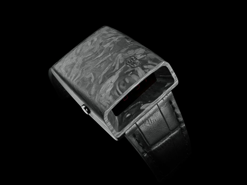 Though the iconic design remains mostly unmodified for this brand new iteration, the Casquette 2.0 swaps out all previous materials for a high-performance, scratch-resistant (and hypoallergenic) ceramic case and bracelet (with rubber support), accented with a grade five titanium caseback and titanium pushers. It’s easy to distinguish the Casquette 2.0 as it has a few straight edges on the top and around the bezel, it’s just a little bit larger and the LED display is larger too. It’s darker than the vintage Makrolon version, and the bracelet has polished edges. The inside gets an upgrade as well, thanks to a new Quartz movement (reference 3980) granting it extra functionality—notably a “secret date” reminder, along with a second timezone, chronograph and low-battery indicator. Still light on the wrist, it weighs only 107 grams.