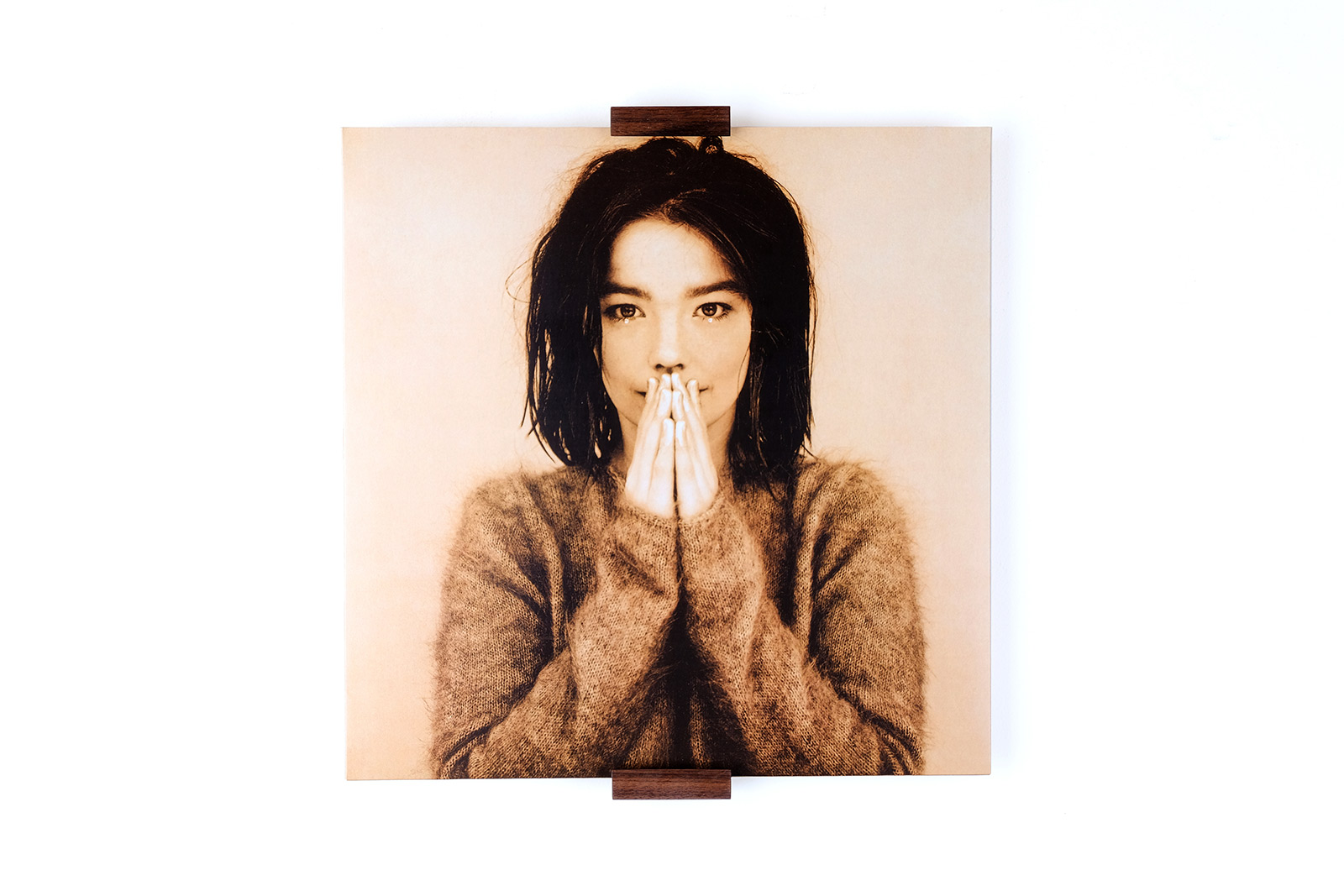 Unlike most vinyl displays, this minimalist design is handmade from wood