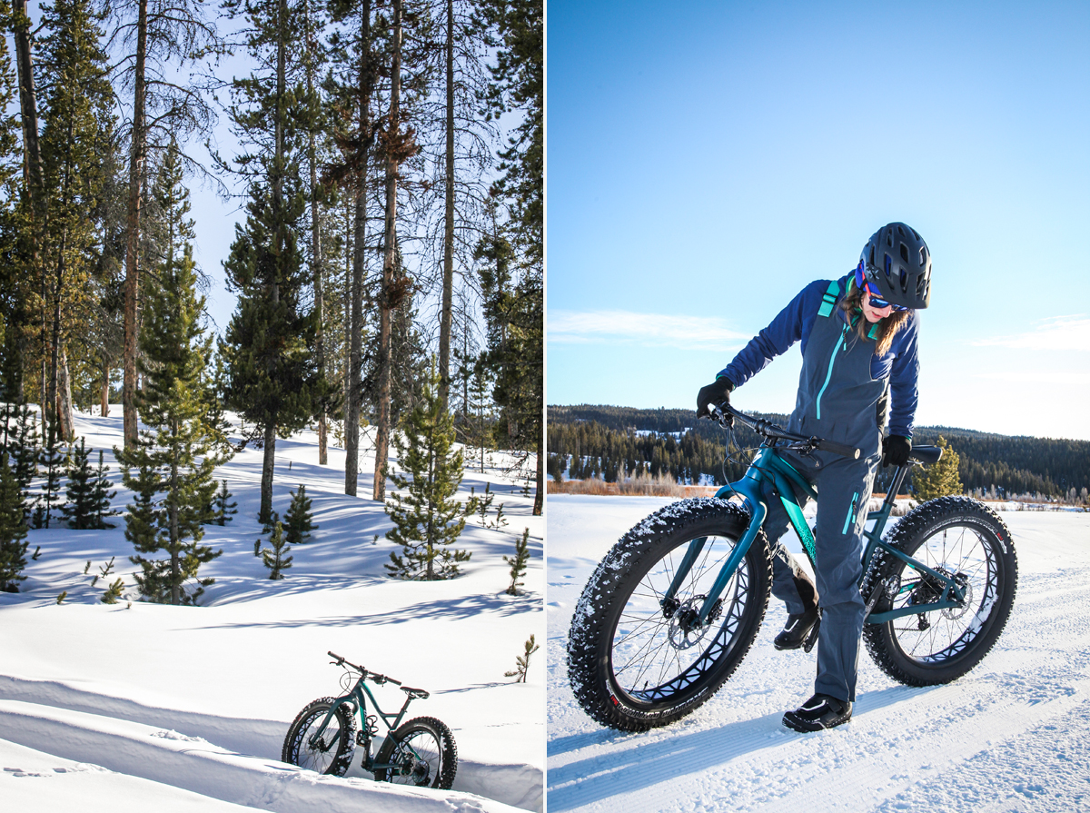 We tested the Hellga on groomed trails on the picturesque property of Turpin Meadows in Jackson Hole, Wyoming. The Hellga charged all the flatter trails as expected, but we were especially impressed with its performance on the uphills in the afternoon, when the snow was at its softest. The bike felt powerful and stable, even on steep descents on the melting slippery snow. Further, it felt more comfortable than any gender-neutral fat bike with little to no repositioning of the body needed to stabilize or climb.