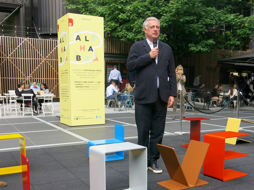 One of the installations in the city itself, Alphabet is by graphic design duo Kellenberger-White. The piece turns their fascination for fonts into an IRL alphabet—26 letters that form chairs have been placed in Finsbury Avenue Square, and have already been put to use for Instagram photos by the area’s office workers. The chairs are painted in colors normally used for industrial metalwork, so while one is the color of the Golden Gate Bridge, another is the hue of the Transporter Bridge in Middlesbrough. Kellenberger-White’s fun, irreverent take on typography has proved so popular, people have already tried to walk away with the chairs.