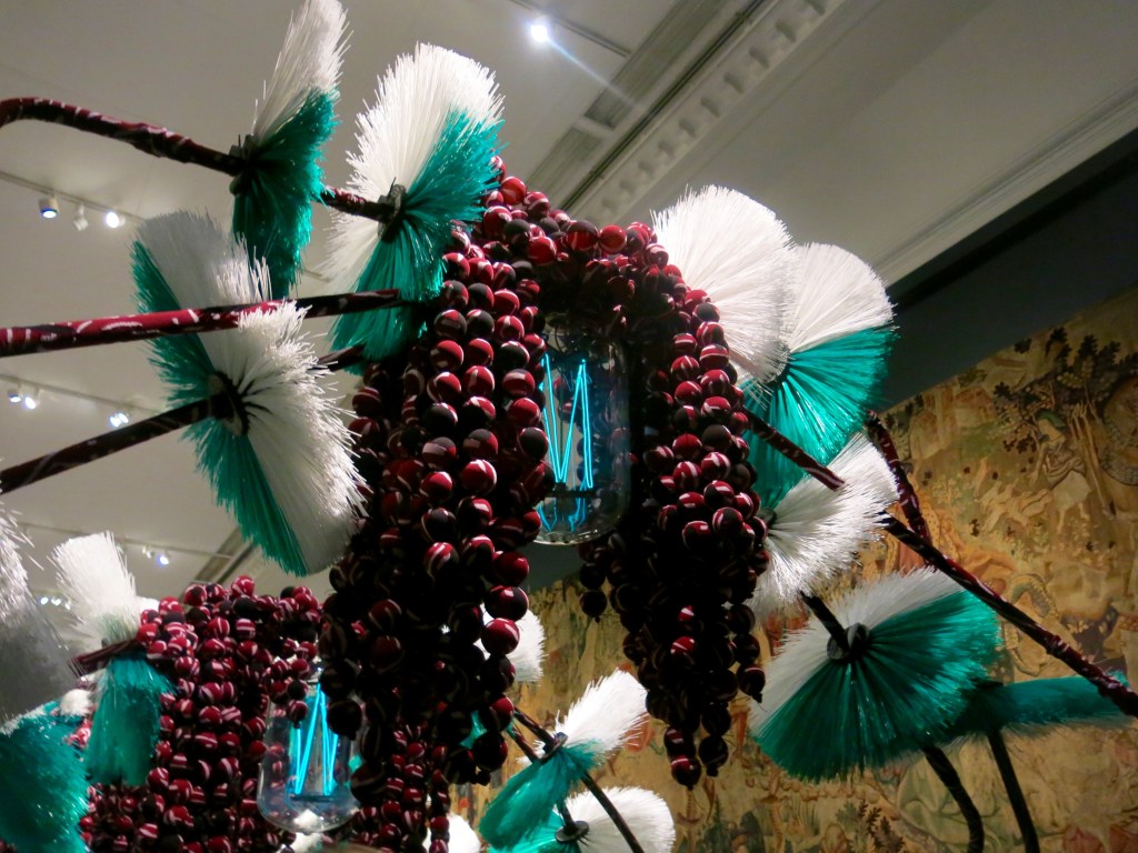 Inside the V&A you’ll find a number of mind-bending installations, including Henrik Vibskov’s “The Onion Farm.” The sculpture is a tunnel of “onions,” made out of fabric, set inside the V&A’s Tapestry Galleries. “Because the room has to be kept dark, I thought it would be interesting to do something that actually was growing in the dark, and I started looking into what kind of things grow in the dark—mushrooms and onions. I also looked into vertical farming, and how we grow things now if we have to feed the whole world… I thought it could be a work that reflects our time, how we farm nowadays,” Vibskov explains. The artist and fashion designer was also inspired by biodynamic farming—including when farmers talk or sing to the plants—so when you walk through his onion tunnel, sensors underneath its lamps makes it play either classical compositions or more ambient music as you pass. Visitors are encouraged to interact with the visually-stunning piece.