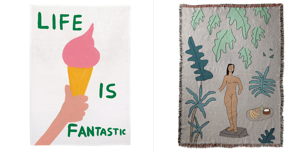 Working with digitally printed textiles and natural fibers, LA-based brand bfgf makes super-charming blankets that are just as much functional products as they are artwork. Their 100% cotton Sunroom Blanket ($175) features a serene scene that brings the greenery in, any season of the year.
